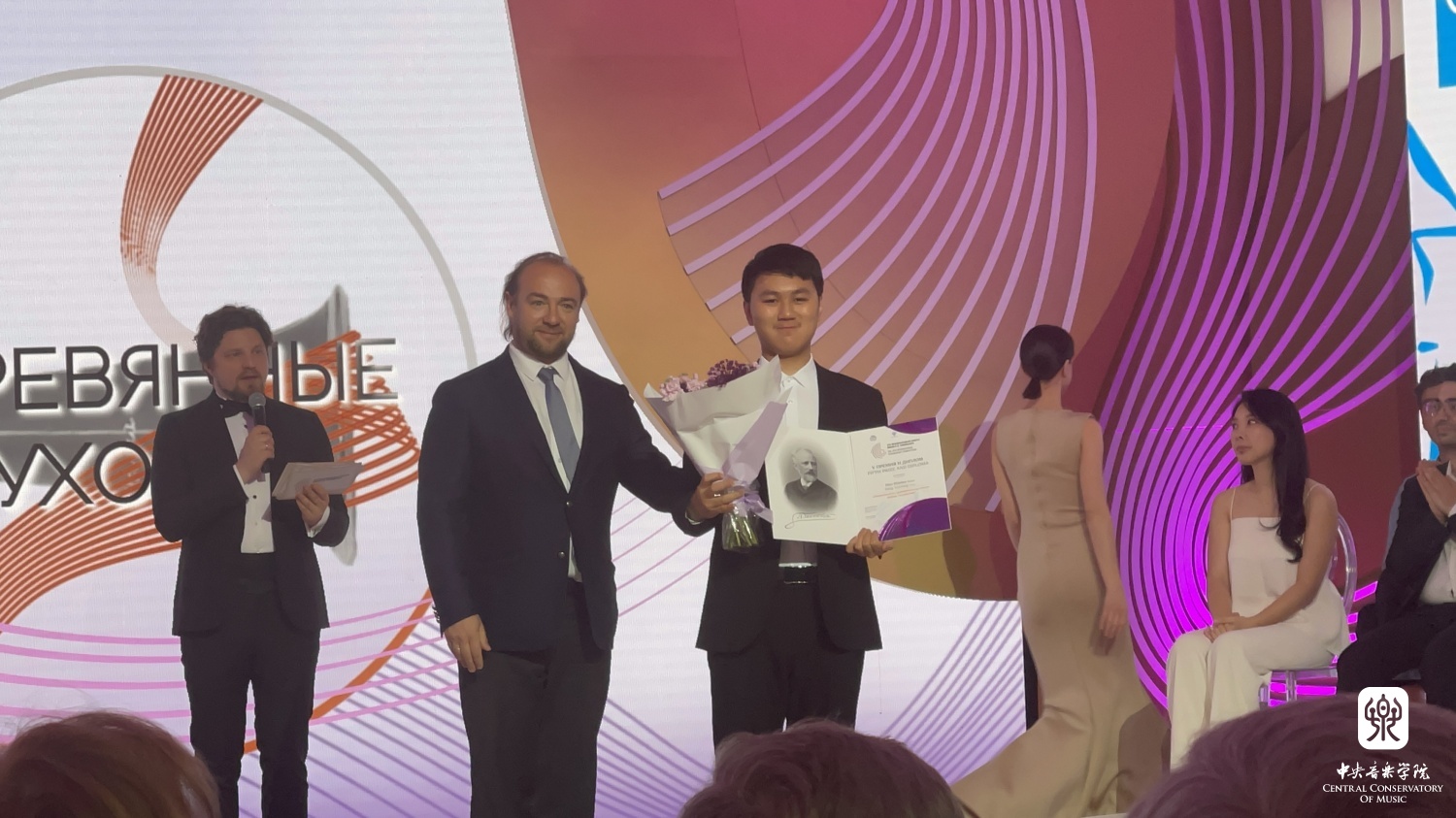 宁悦宁与导师金京春教授、指挥家捷杰耶夫合影