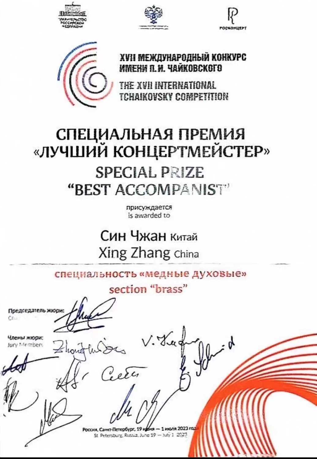 “作为世界上最重要的音乐大赛之一,柴可夫斯基第十七届音乐比赛受到全国及国际上极大的关注。很荣幸担任本届比赛的评委,比赛工作期间和来自各国的音乐家们相互交流学习,共同欣赏了选手们的高水准演奏,并赞叹新一代的成长。中国有两位铜管参赛选手能够脱颖而出进入到复赛,最后圆号选手金智成得到十位评委的共同认可并获得铜管组的银奖,十分难得的成绩值得热烈祝贺!期待未来有更多的人才在国际音乐竞赛中取得好成绩并继续为祖国争光。”