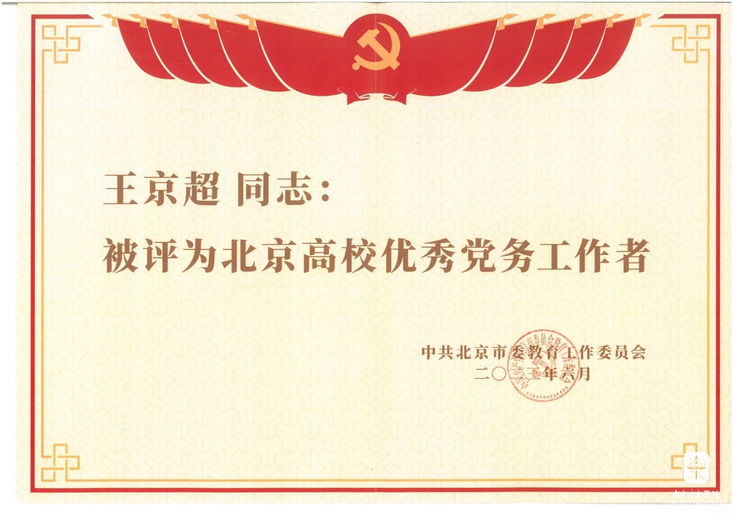 在日常工作中王京超同志始终牢记一名共产党员的初心,认真学习党的二十大精神,思想上、行动上坚决同以习近平同志为核心的党中央保持高度一致。先后被共青团北京市委员会、北京高校毕业生就业促进会、KY开元集团官网授予北京市优秀团干部,北京地区高校就业工作先进个人,“三育人”先进工作者、优秀共产党员、疫情防控工作先进个人等荣誉称号。