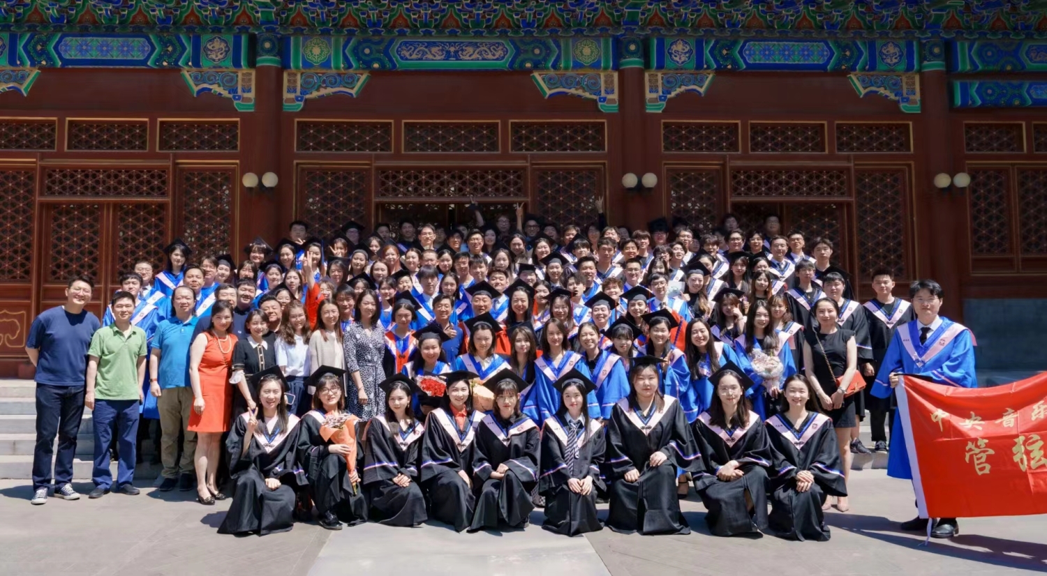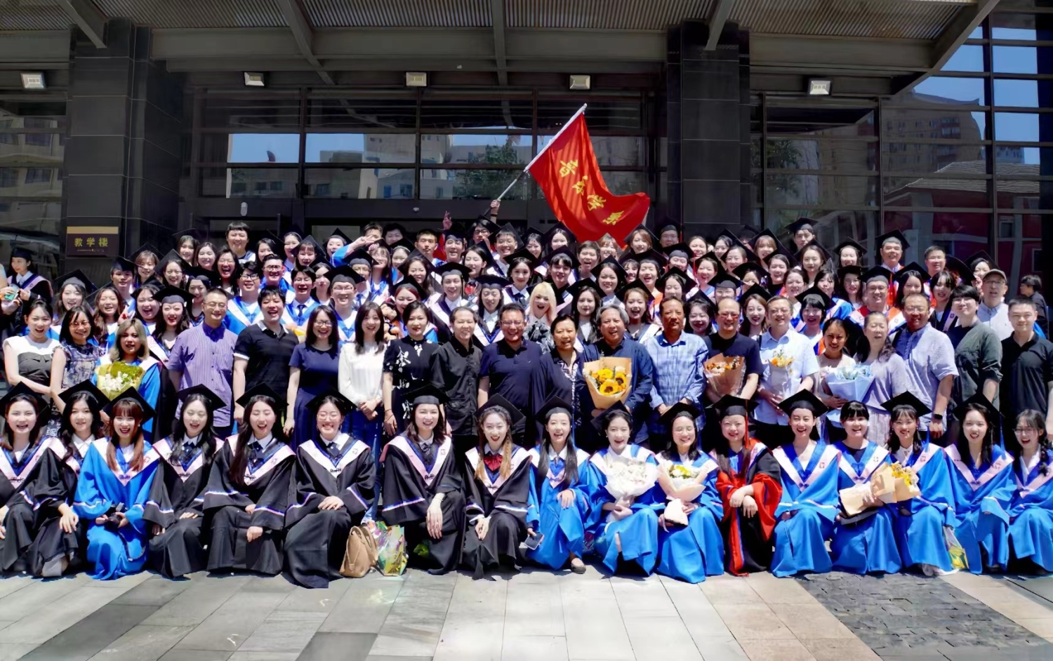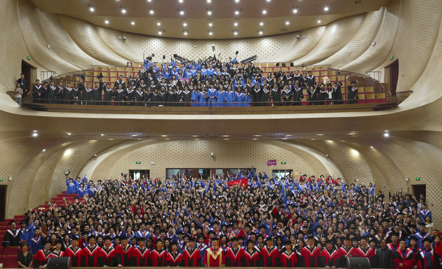最后,毕业典礼在全场奏唱《没有共产党就没有新中国》《友谊地久天长》的热烈而温情的氛围下落下帷幕。