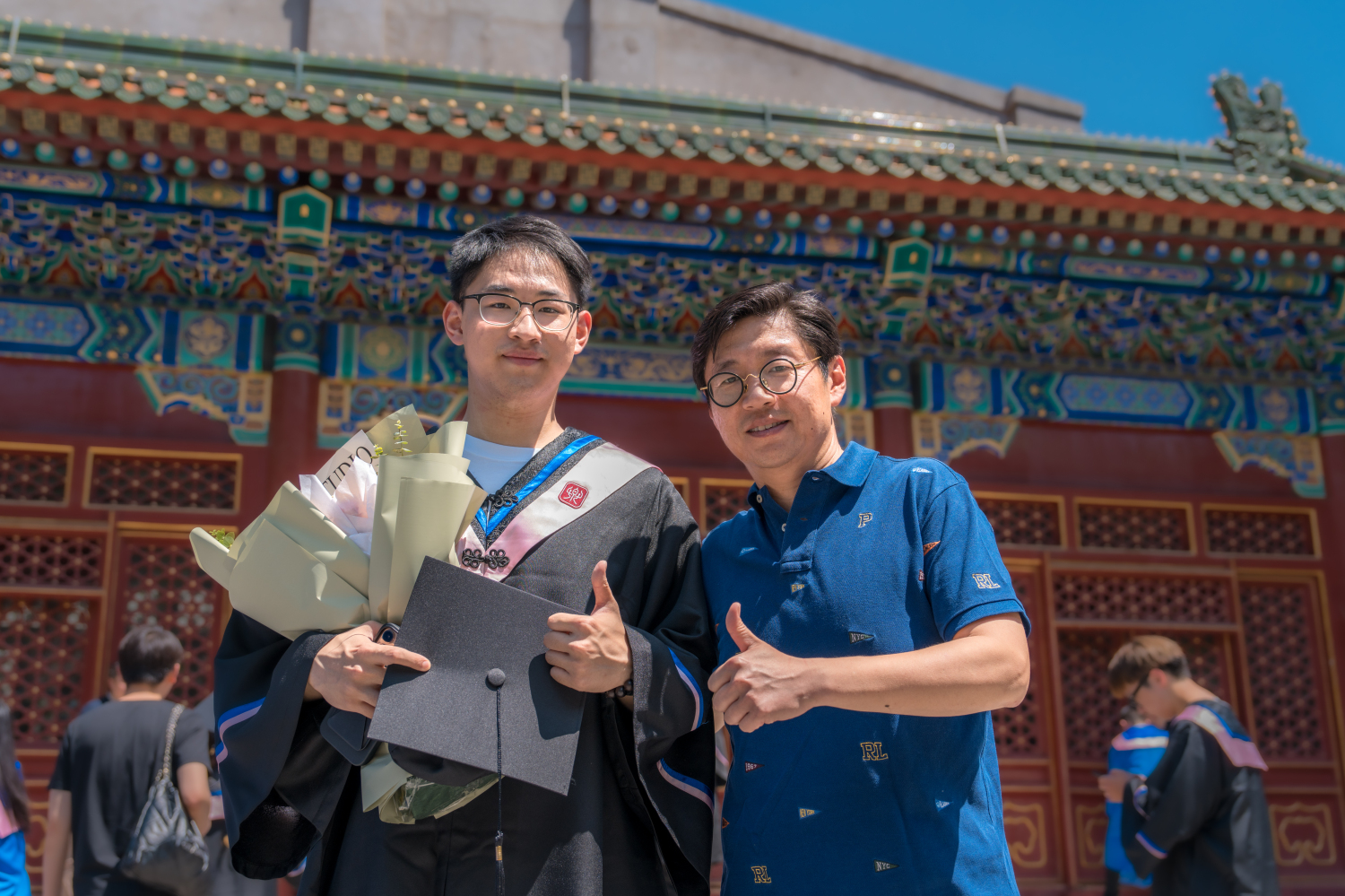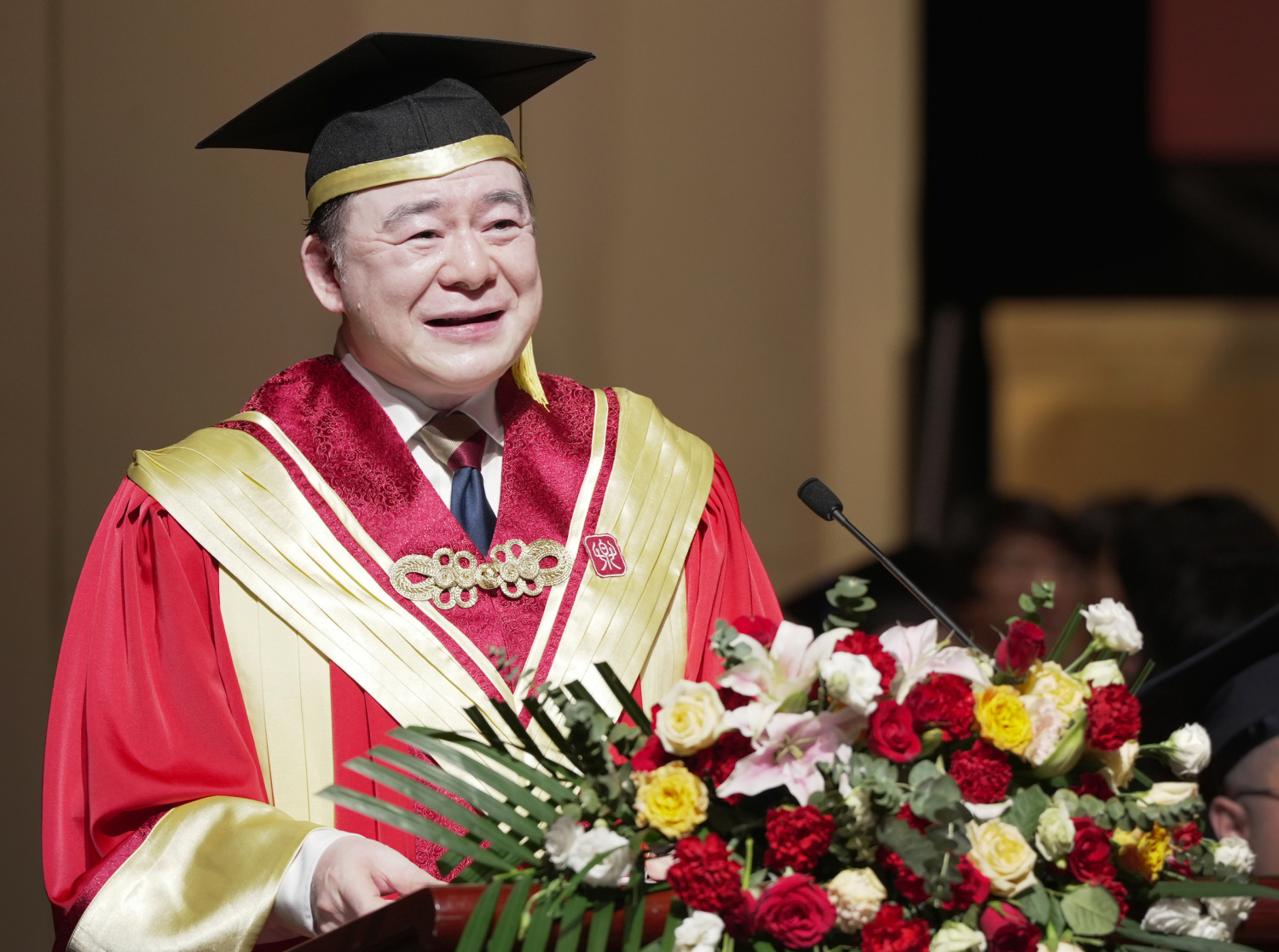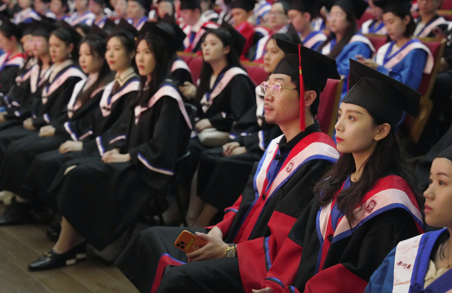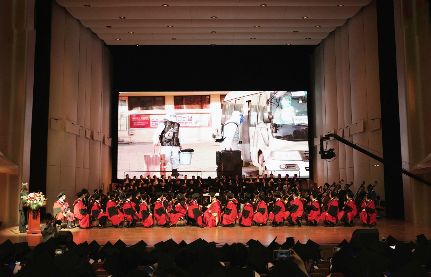 最后,毕业典礼在全场奏唱《没有共产党就没有新中国》《友谊地久天长》的热烈而温情的氛围下落下帷幕。