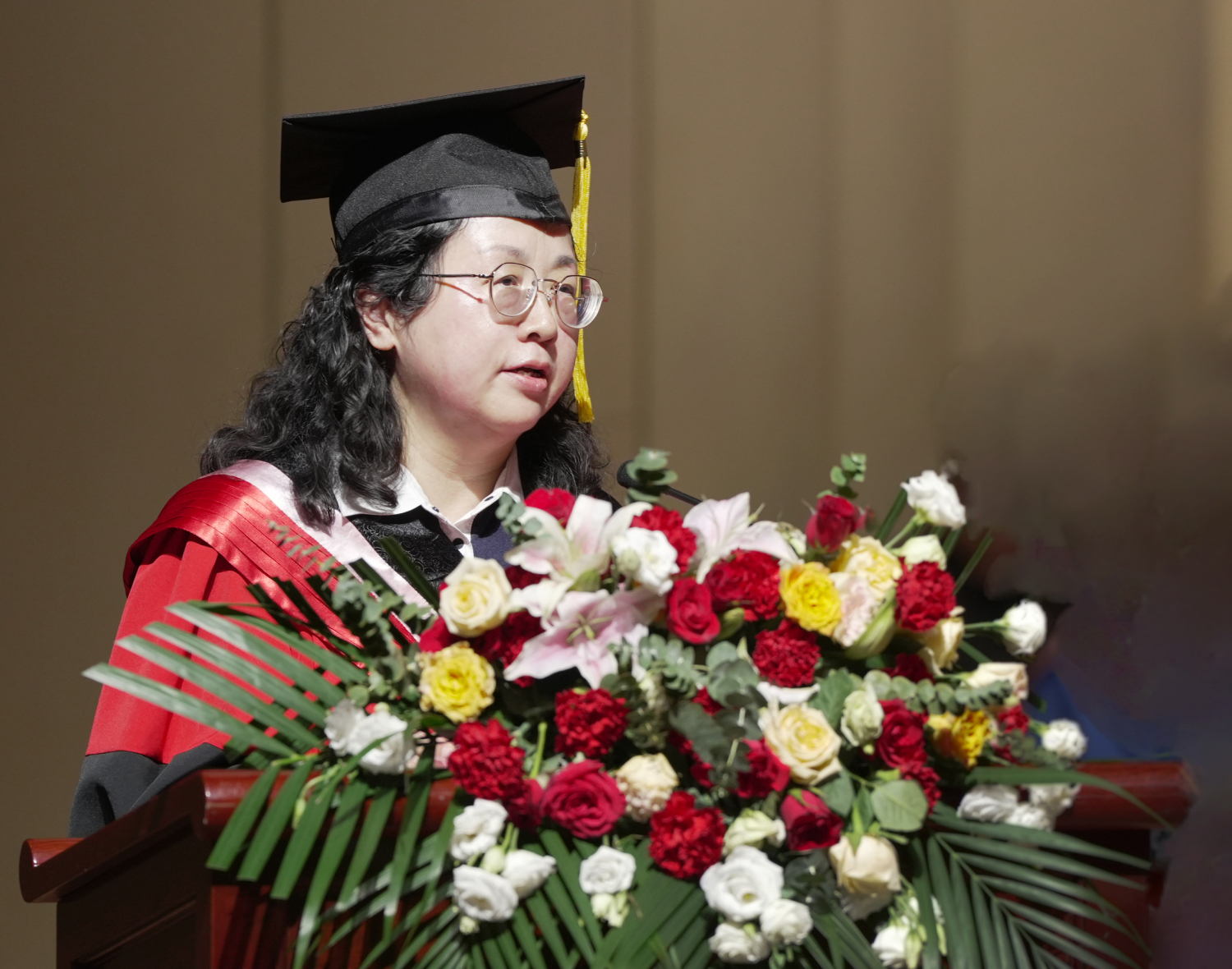 作曲系张帅教授是2022北京冬奥会主题曲《雪花》的创作者,该歌曲在开幕式上一经播出,引起了热烈的社会反响,收获无数赞誉。今天,作为教师代表,张帅教授从未来的规划展开发言,勉励同学们终身学习,在人生成长的道路上,做一个胸怀山川,志存高远的人;在艺术创作的道路上,做一个心怀人民,活在时代里的人;在追寻梦想的道路上,做一个坚守初心,泰然自若的人。