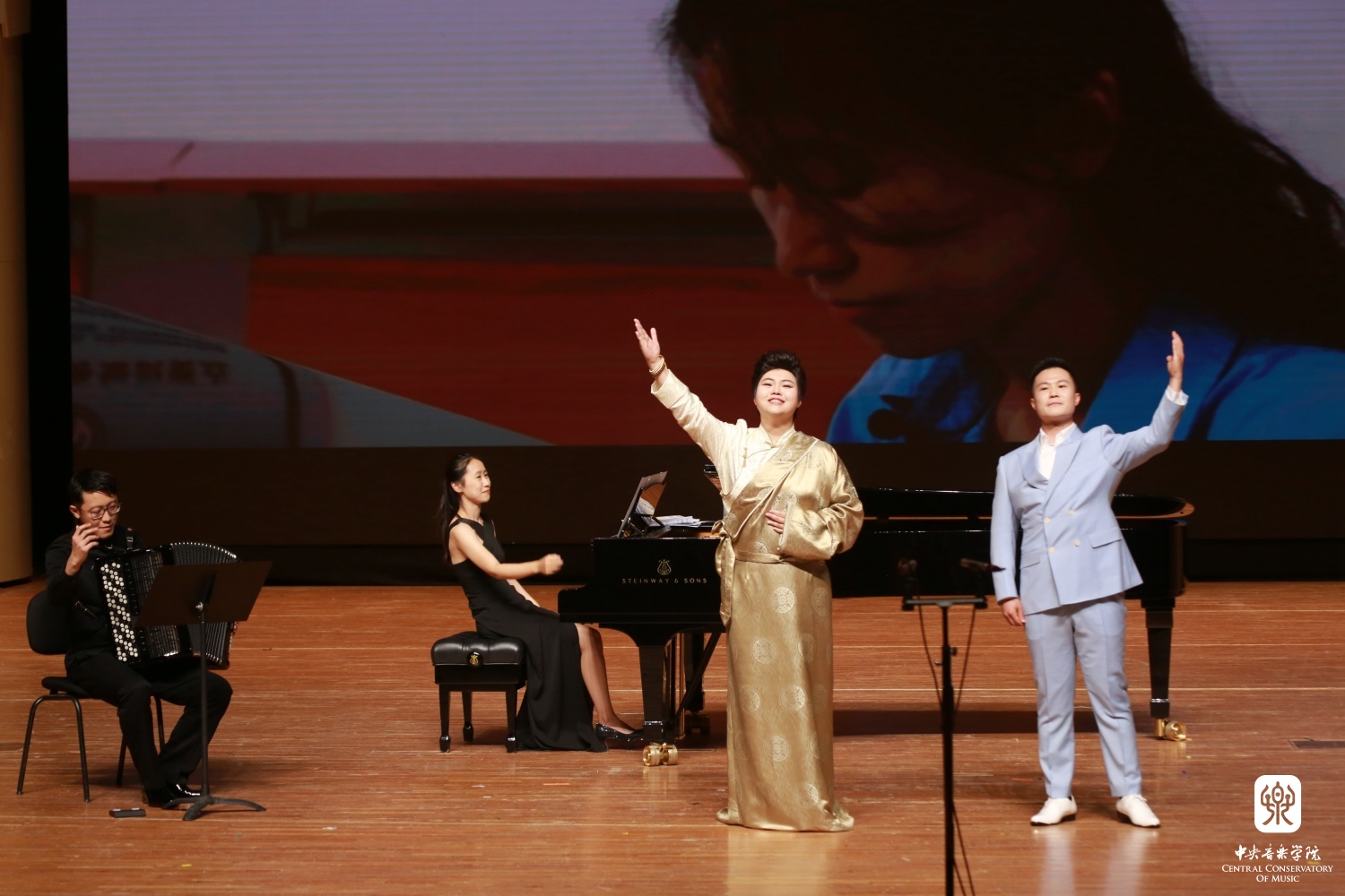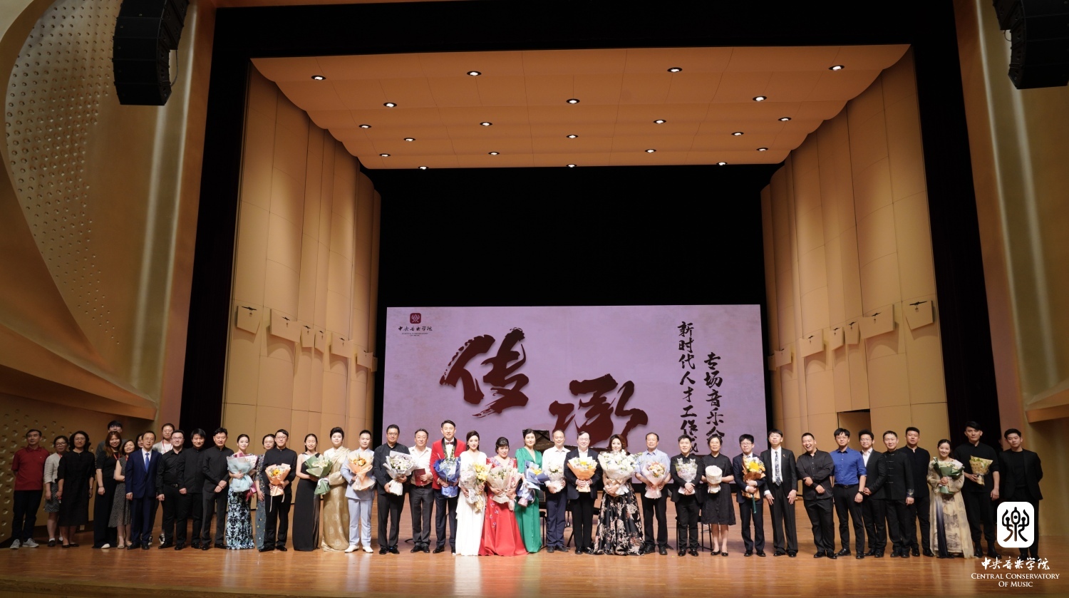 随后大屏幕通过一系列照片的展示,更加鲜明直观地向观众们呈现了KY开元集团官网的“薪火相传,一脉相承”:吴祖强先生和学生郝维亚、郝维亚教授和他的学生们;郑小瑛先生与学生俞峰、俞峰教授和他的学生们;林耀基先生与学生童卫东,童卫东教授与学生党华莉,党华莉老师与学生们;朱工一先生与学生吴迎、吴迎教授与学生鹿尧、鹿尧老师与学生们......这种传承是知识的传授、信念的坚守、精神的赓续,在场的观众和毕业生都被这段视频深深打动,感受到了作为央音人的骄傲与自豪,将音乐会推向了高潮。
