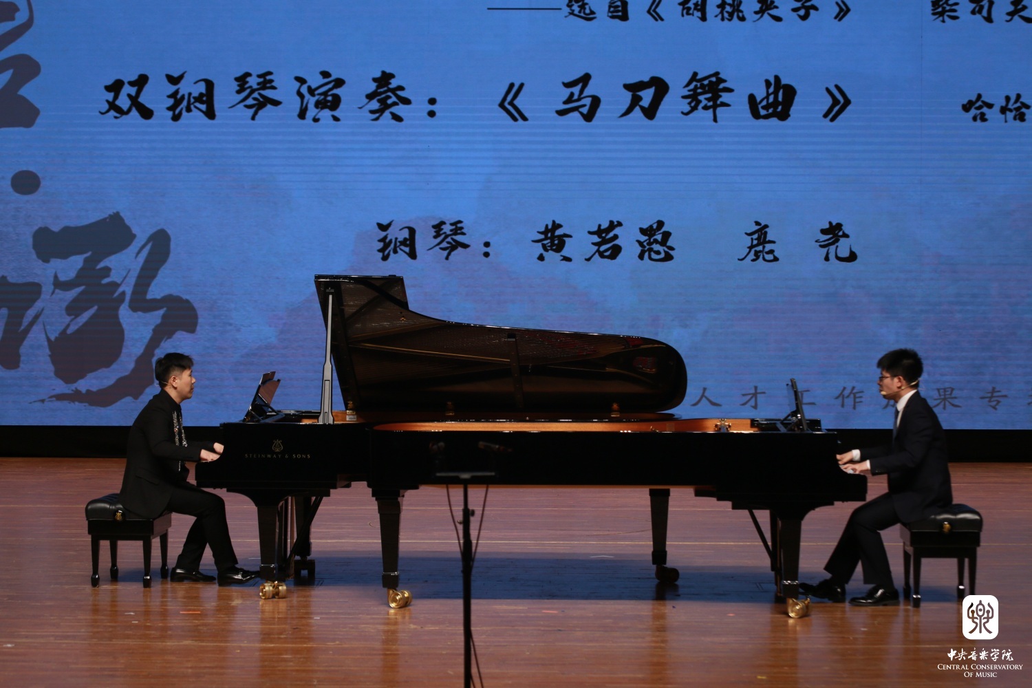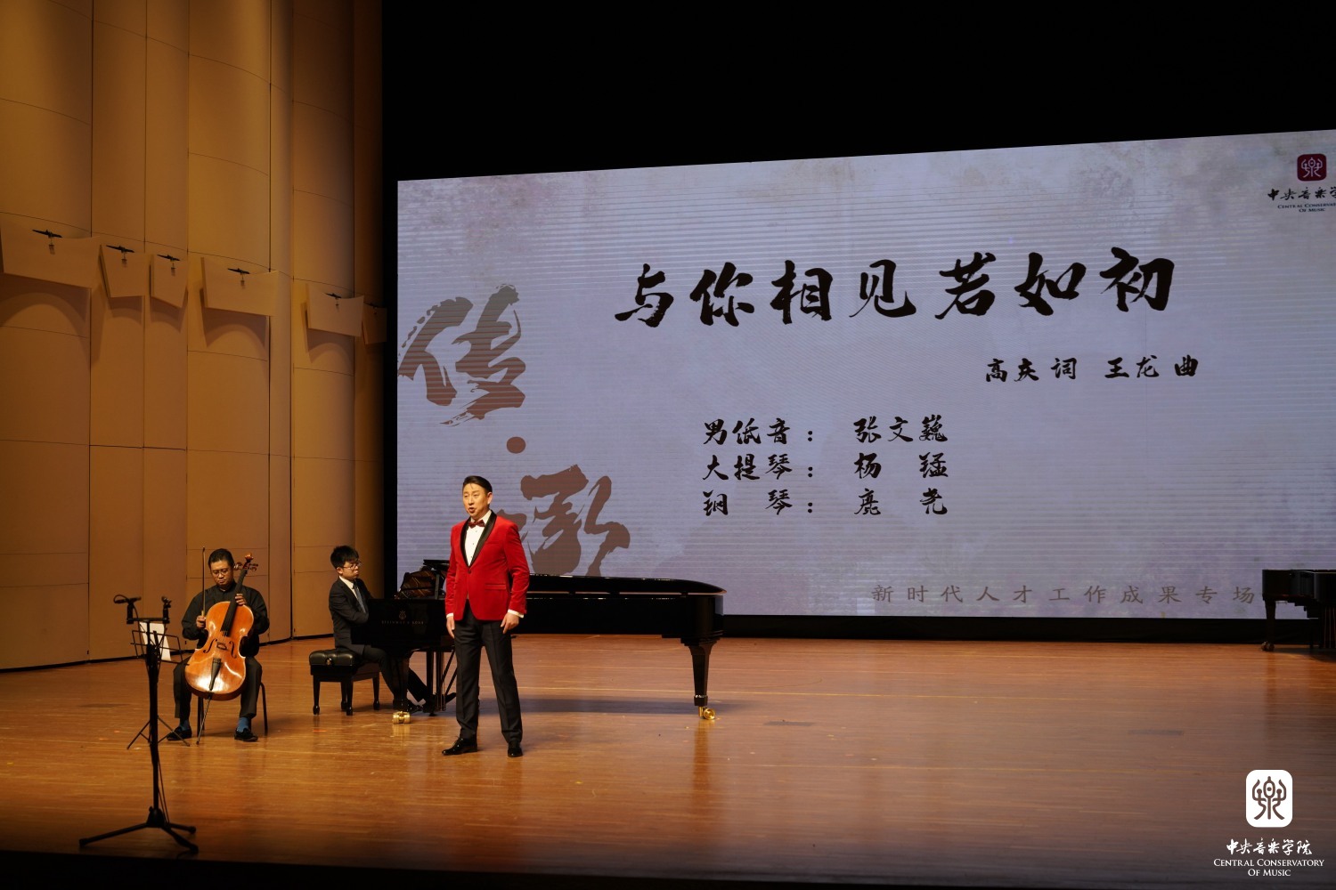 在《传承》的视频短片后,声歌系教授张文巍、大提琴专业教授杨锰、钢琴系钢琴主科教师鹿尧带来的歌曲《与你相见若如初》以充沛的感情,娓娓道来,屏幕中闪过2023届毕业生在学校四年生活的一幅幅画面,又把毕业生带回了校园的美好时光中。钢琴系钢琴主科教师黄若愚和鹿尧演奏了四手联弹《糖果仙女舞曲》和双钢琴《马刀舞曲》,二人以诙谐的方式和语言,高超的专业技能向毕业生们献上祝福。本次音乐会当天正值学校2023届毕业生的毕业典礼日,学校也把这台精心策划的高水平音乐会送给即将走出校门的又一批音乐人才,祝福他们前程似锦,未来可期!