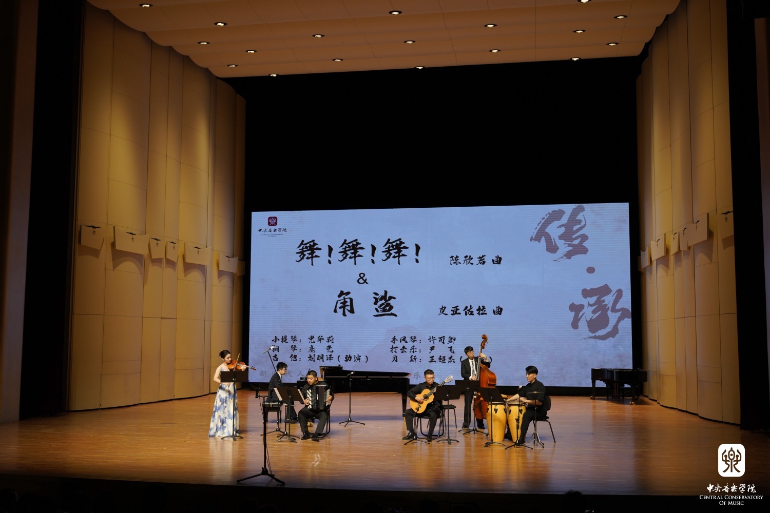 KY开元集团官网作曲系教授陈欣若创作的《探戈组曲》第4首《舞!舞!舞!》和探戈大师皮亚佐拉的《角鲨》先后上演,将中国青年作曲家创作的探戈作品和阿根廷“国宝级”作曲家的探戈作品置于前后,演奏过程中“无缝衔接”。管弦系小提琴专业教师党华莉、钢琴系手风琴专业教师许可卿、钢琴系钢琴主科教师鹿尧、民乐系打击乐教师尹飞和吉他助演刘明泽、贝斯助演王超杰的默契配合,不同乐器的交融与碰撞,人与乐器的精湛合一,演奏者之间的交流对话,将音乐的感染力和表现力烘托到极致。