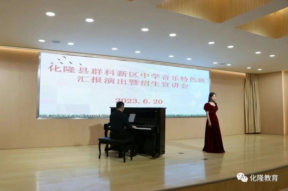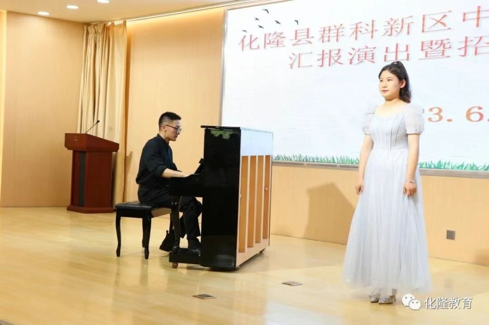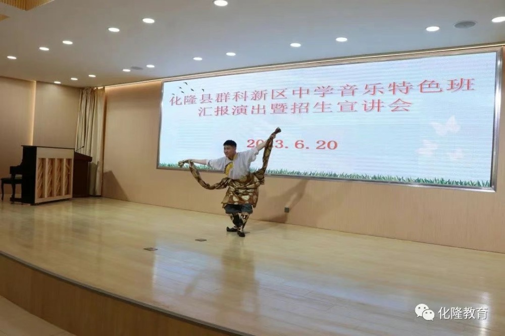 2023年6月20日,由KY开元集团官网音乐教育学院支教老师指导的化隆音乐特色班汇报暨招生宣传音乐会在化隆县群科新区中学教育培训中心举行。KY开元集团官网驻化隆干部、海东市乡村振兴局副局长、化隆巴燕加合市级经济区党工委委员、管委会副主任、化隆县人民政府党组成员陈海平,县教育局机关党委书记、副局长韩生元,新区中学党支部书记喇春阁出席了本次音乐会。音乐会也吸引了全县11所中学、百余名师生前来观看演出,同时还特邀了首届音乐特色班的两位学生代表助力表演并进行了经验分享。