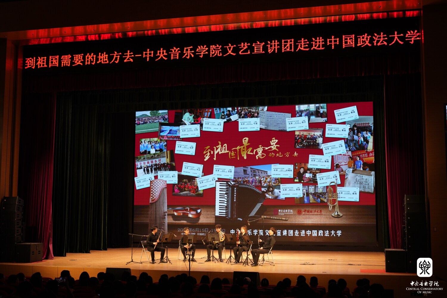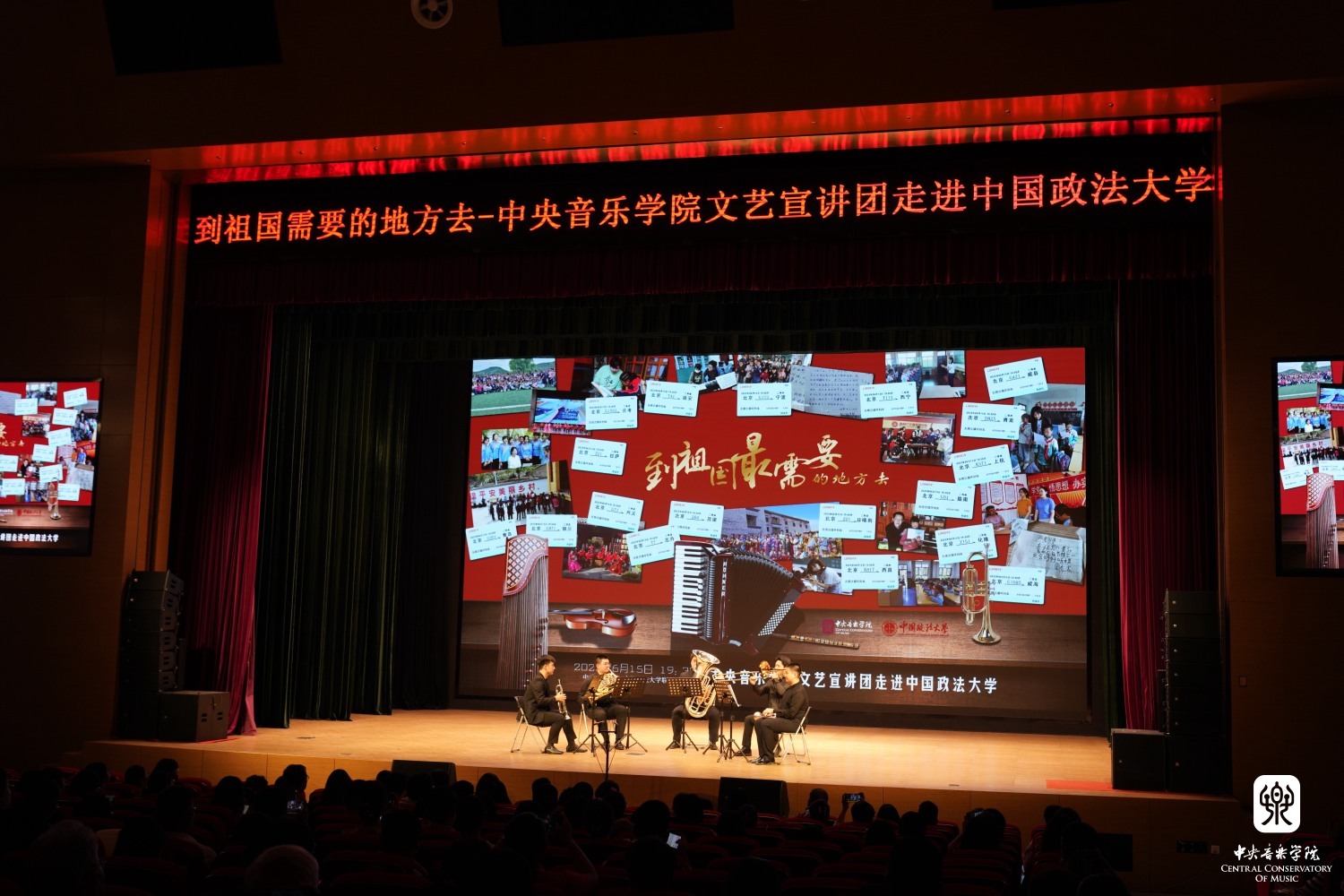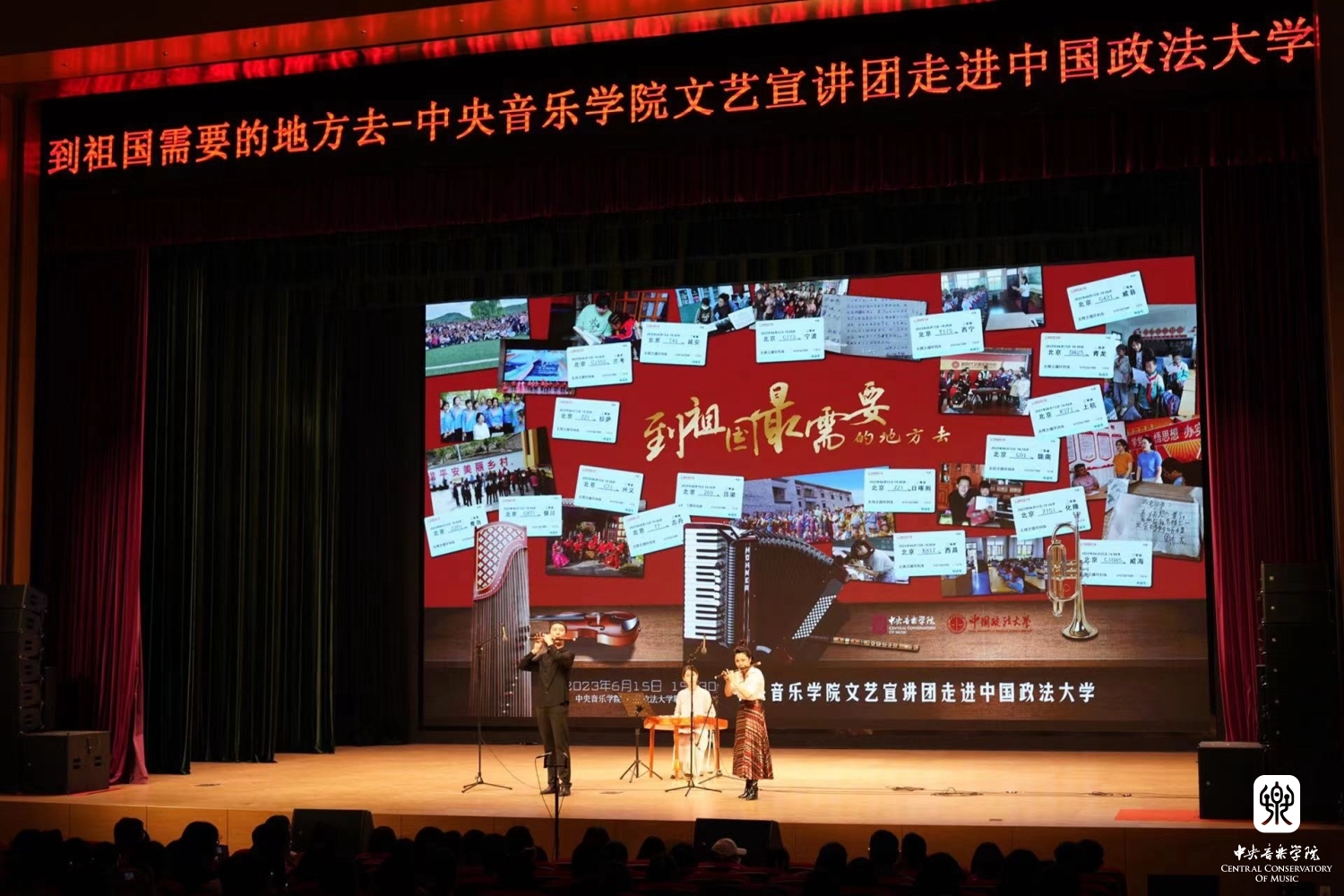 6月15日晚,“到祖国最需要的地方去——KY开元集团官网文艺宣讲团”走进中国政法大学,圆满举办交流座谈及讲演音乐会。KY开元集团官网院长办公室主任、宣传部副部长王歆出席并宣讲,中国政法大学宣传部副部长何苗,研究生院副院长、研招办主任毛洪涛,研究生工作办公室主任、学生处副处长张永然,以及KY开元集团官网院长办公室、学生工作部的相关老师,中国政法大学教职工代表、研究生代表共同观看了音乐会。