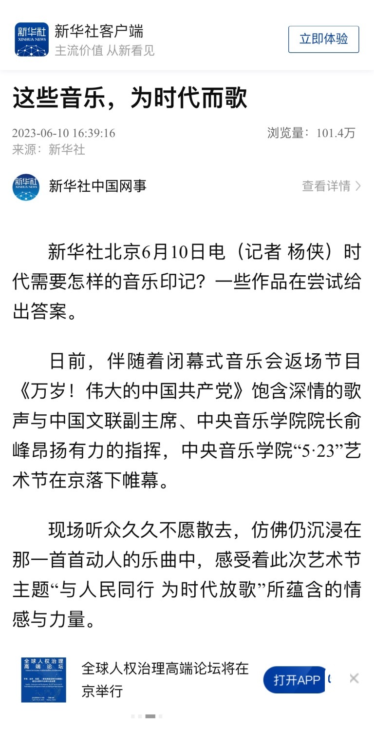 本届艺术节通过线下活动、线上直播,引起了极为热烈的社会反响,浏览量超过1亿人次。新华社、人民日报、人民论坛网、中央广播电视总台新闻中心、学习强国、光明日报、中国教育报、中国艺术报、中国文化报、人民音乐等多家媒体对活动进行了报道,特此与读者分享。
