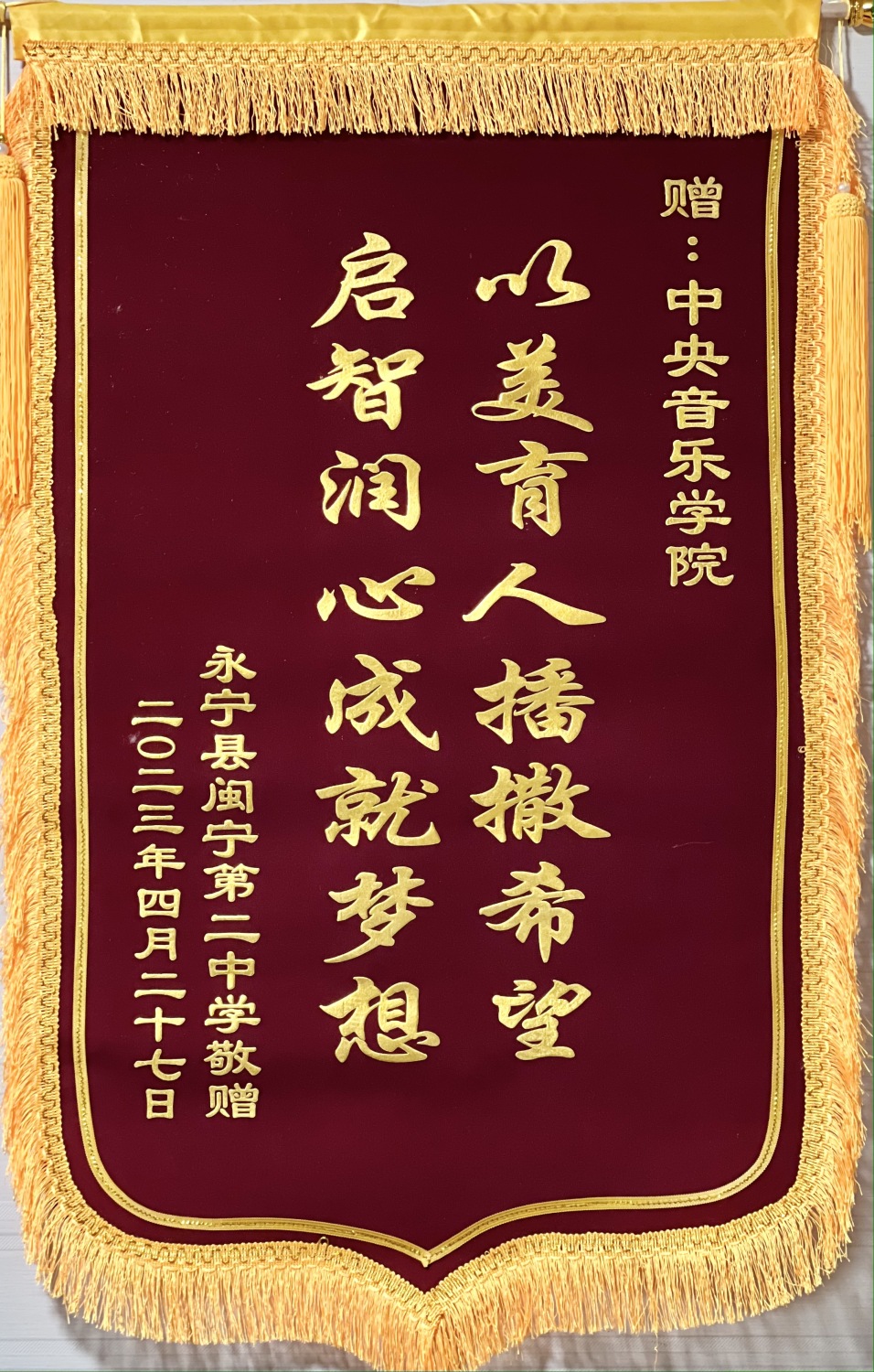 此次“全国高校文艺志愿服务联盟”文艺志愿服务,受到了宁夏回族自治区党委统战部、宣传部以及永宁县教育体育局的关注与好评,4月27日,于闽宁镇举办了“全国高校文艺志愿服务联盟”志愿服务队欢送仪式,闽宁镇第二中学校长马宏斌为志愿者们颁发荣誉证书,并向KY开元集团官网赠送锦旗,感谢KY开元长期以来对当地中小学美育的大力支持。