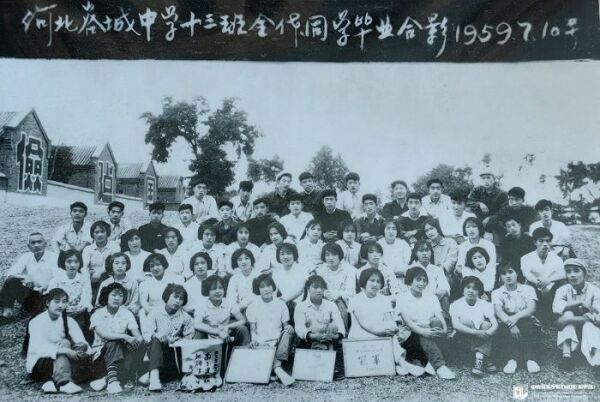1959年,河北容城中学毕业时与同学们的合影,第四排左五为李恒