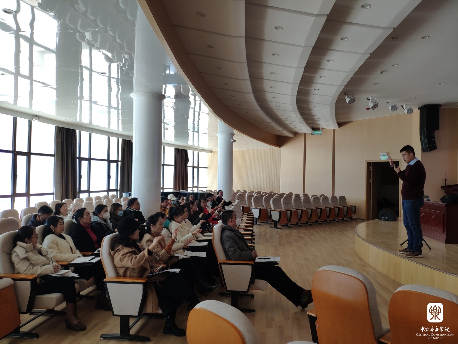 下午贺晓乐副教授在化隆县新时代文明实践中心,为全县的28名骨干音乐教师讲授合唱指挥课。贺老师深入浅出的教学,使参训的教师们在短时间内对于合唱指挥有了基本认识与了解。