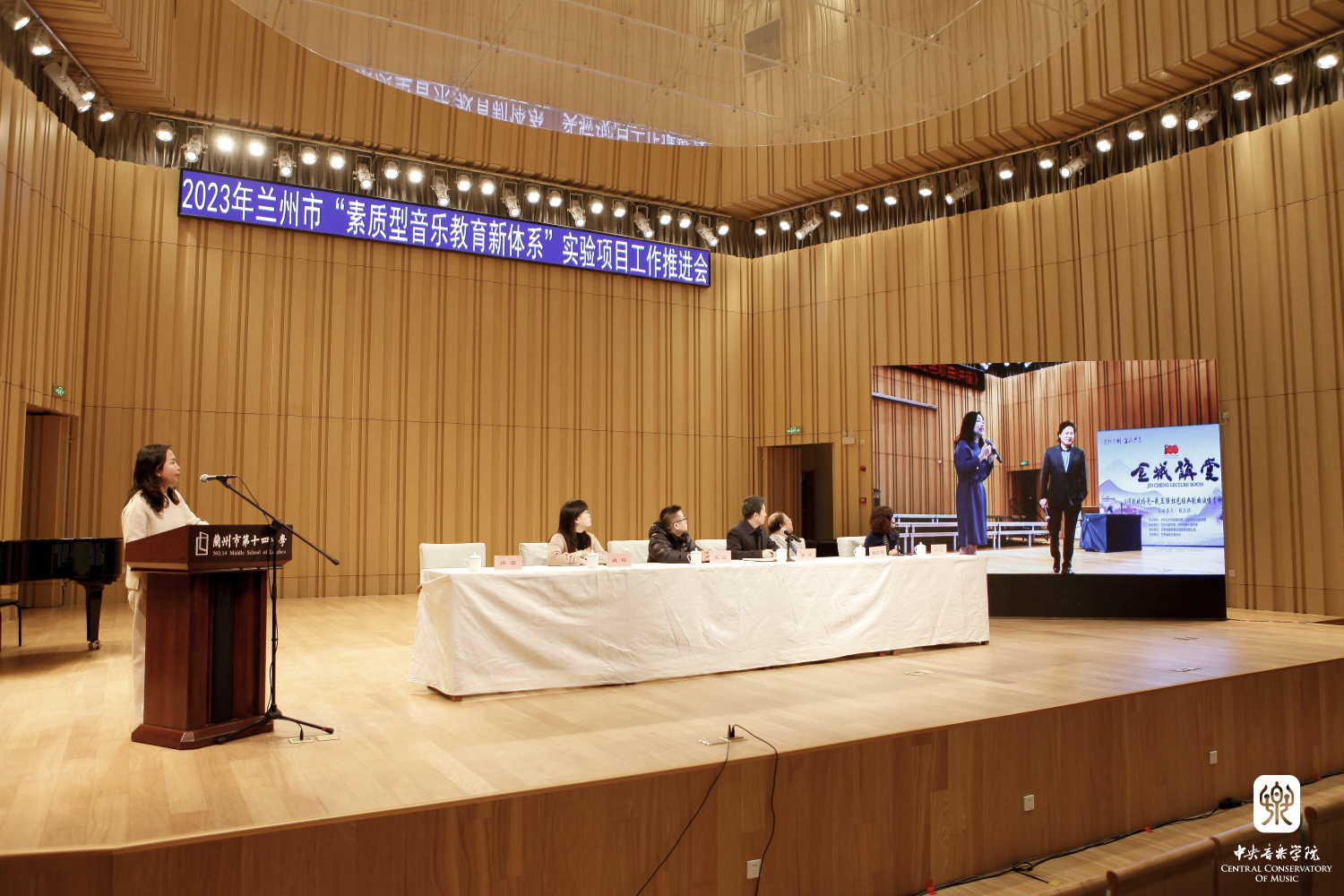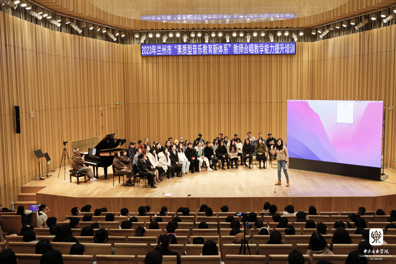 在活动的最后,参与“素质型学校音乐教育新体系”实验项目的兰州市学校校长代表上台接受了教育局领导的授牌,参会的百余所学校分别被授予了“兰州市素质型音乐教育新体系实验项目——实验总校/基地校/试点校”等称号。一整天的研讨活动和推进会丰富而充实,让我们看到兰州市音乐教育的火热与力量,让我们感受到高校音乐教育人才的培养与一线音乐教育的实践紧密联系,高校与学校以各自的特点出发,都在为美育教育贡献着自己的力量,为孩子们创造美好的艺术世界。