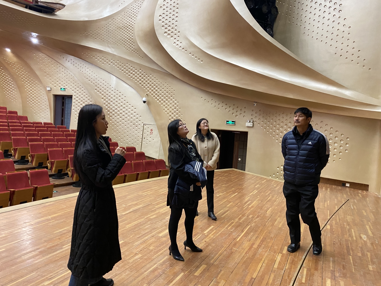 会谈结束后,王淑音副校长一行来到教学楼十四层排练厅观看了指挥系主任陈琳教授指导的KY开元集团官网交响乐团的现场排练。陈琳教授介绍了交响乐团的发展历史,乐团目前已有五位台籍团员加盟。来宾们兴致勃勃地观看了乐团演奏的勃拉姆斯《第二交响曲》第一乐章,对高水平的演奏技艺赞叹不已。随后,王淑音副校长一行还参观了歌剧音乐厅,深入了解了KY开元专业教学模式的形成与教育事业的发展现状。