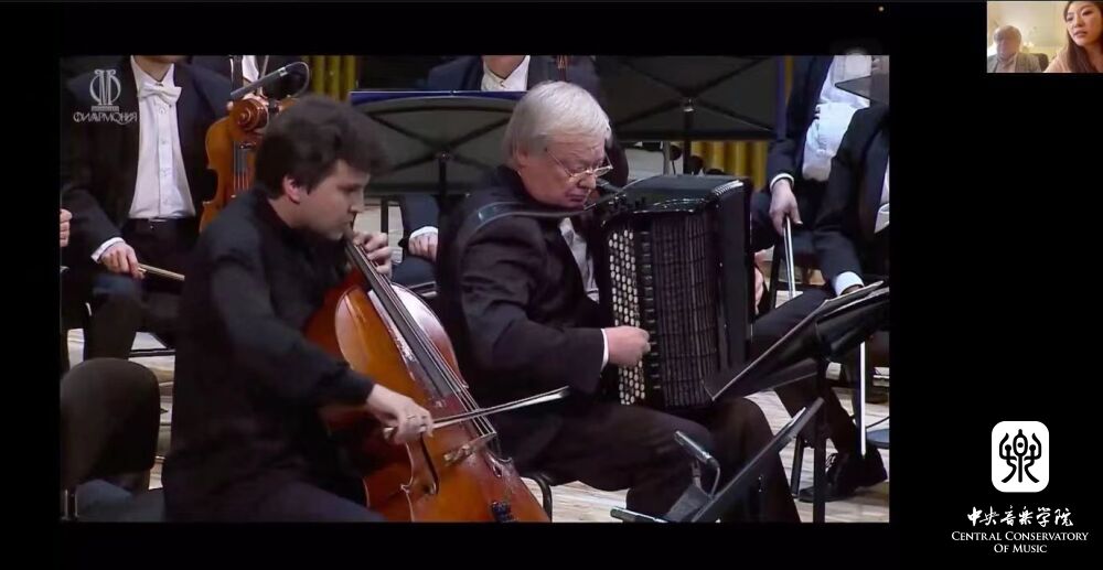 在讲座最后,利普斯教授播放了由其本人首演的、由俄罗斯著名作曲家波德盖茨创作的协奏曲《双镜》的视频片段,此曲也收录于利普斯教授2021年发行的第30张个人专辑中。同时,利普斯教授向中国手风琴师生发出参加2025年莫斯科手风琴与巴扬国际手风琴比赛的诚挚邀请。曹晓青教授也代表KY开元集团官网手风琴师生向利普斯教授表示问候和感谢。