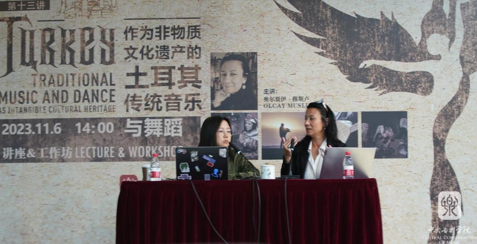 下午,“MIRAS文化可持续发展中心”理事会的创始主席、首席执行官奥尔贾伊·穆斯卢(Olcay Muslu)博士主讲“作为非物质文化遗产的土耳其传统音乐和舞蹈”(Traditional Music and Dance as Intangible Cultural Heritage in Turkiye)讲座,并举办相应的工作坊。