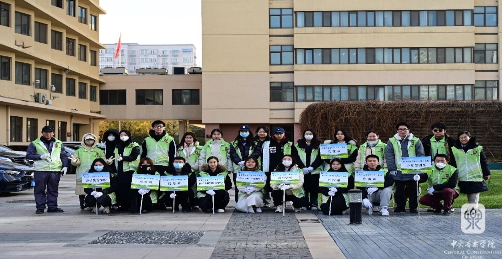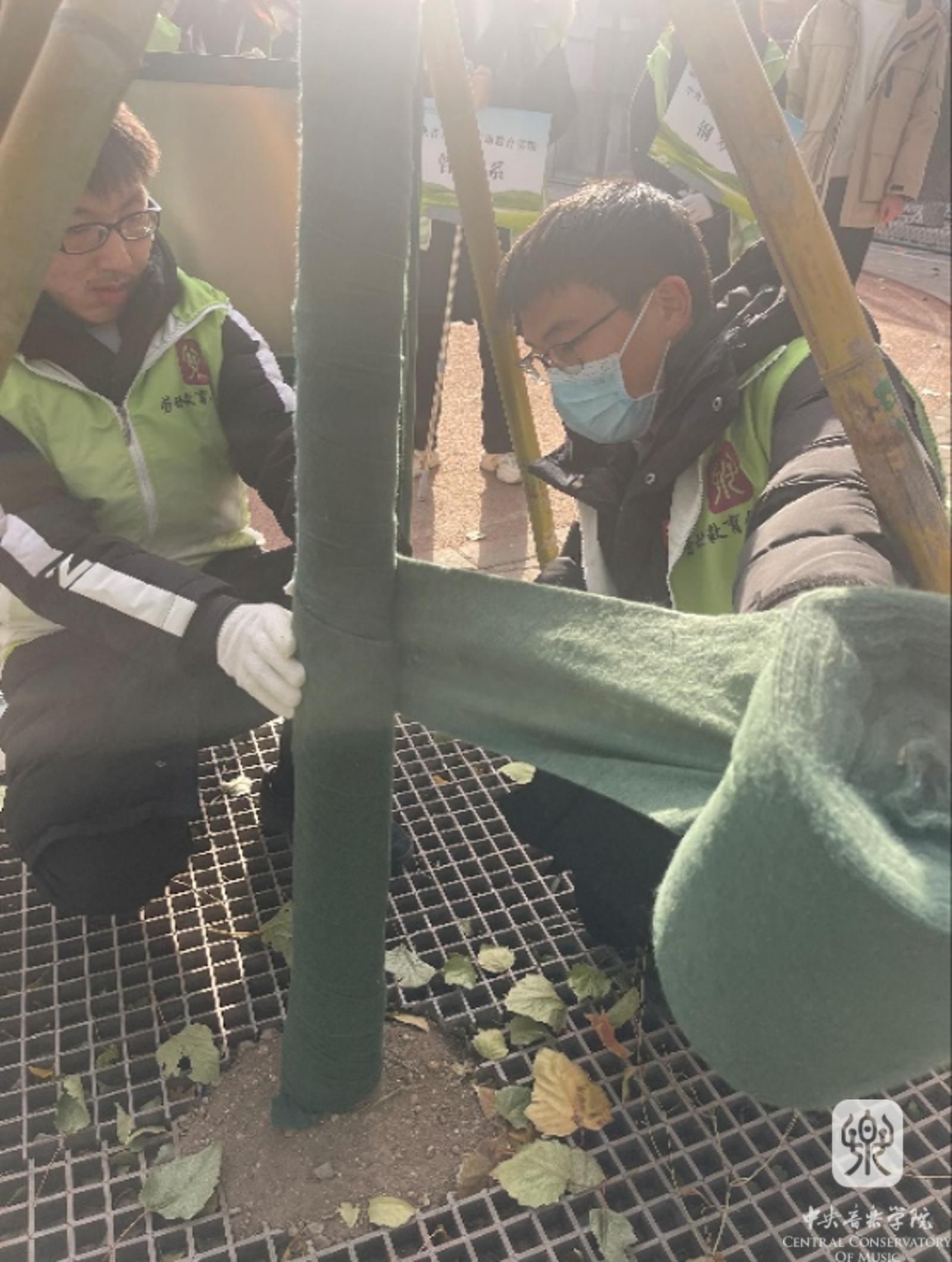 劳动教育实践,首先从钢琴系负责的施坦威花园开始。今年七月,一场突如其来的暴雨将施坦威花园损坏,雨后学校迅速组织重建并及时恢复原貌。今天同学们用一块块绿色防寒布将花园内新补种的绿植花卉保护起来,给花木盖上“被子”,让其安稳的度过严冬,来年春天再绽放。