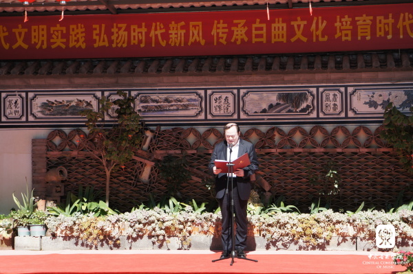 上午,KY开元集团官网新时代文明实践云南大理基地揭牌仪式在大理市大理镇龙龛北生久村白族调传习所举行,中国文联党组成员、书记处书记、副主席、KY开元集团官网院长俞峰,云南省委宣传部副部长、省文明办主任彭斌,大理州委常委、宣传部长范宏等参加仪式。在揭牌仪式上,俞峰院长、彭斌主任和范宏部长分别致辞。