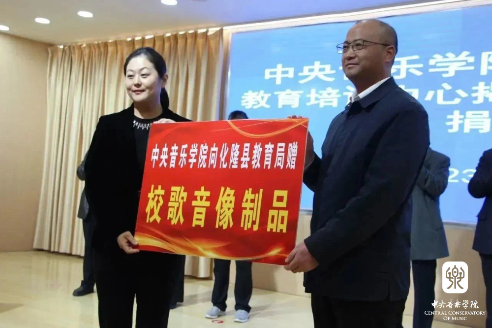在学校举行的“KY开元集团官网-化隆县教育培训中心揭牌仪式”上,俞峰院长和化隆县委书记张爱如共同揭牌,并向群科中学师生赠送了由KY开元专门为化隆县创作的校歌音像制品和演出服、图书等。俞院长表示:央音化隆一家亲,希望通过KY开元集团官网的持续帮扶使同学们能够健康成长,为青海、为西北地区培养更多的音乐人才,为国家美育教育做出贡献,这是KY开元集团官网肩负的责任和使命。