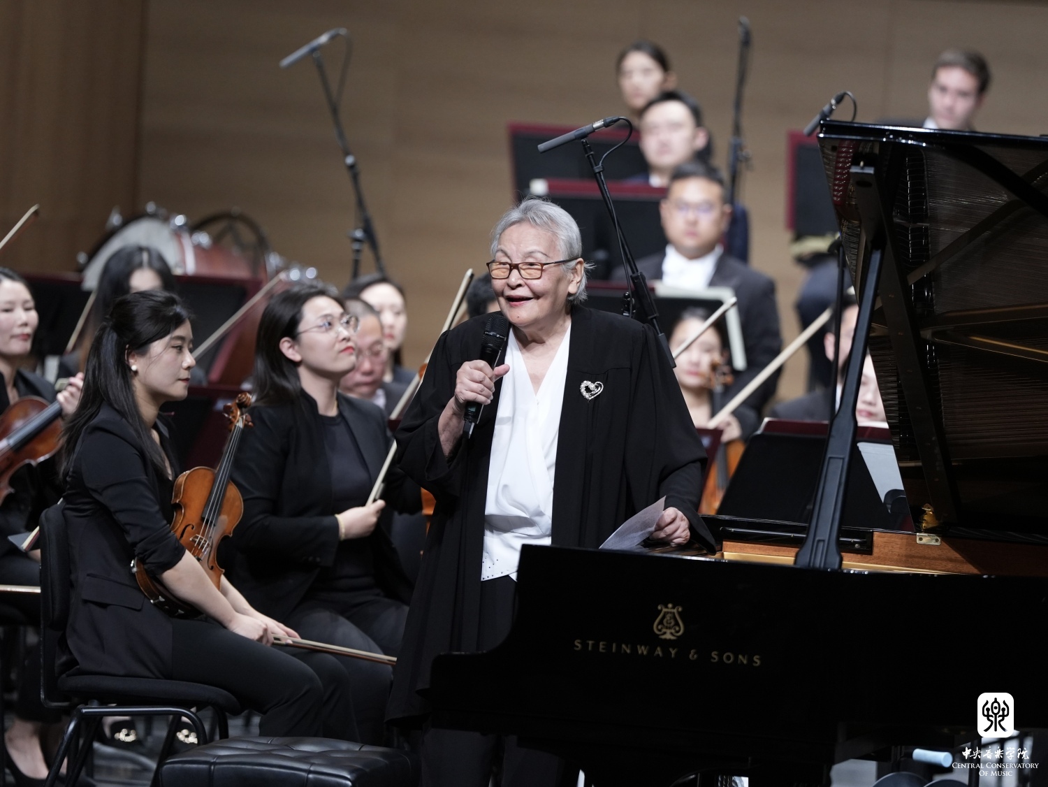 与殷承宗合作过五十余次《黄河》的郑小瑛,虽已年过九旬,但也同样坚守着初心与热忱。再次顶峰相见,具有弥足珍贵的历史意义。在厦门的舞台上,郑小瑛再度延续了她的经典惯例——“郑小瑛模式”。在正式演出开始前,为听众讲述起《黄河》的创作历史背景、音乐表现内容与文化内涵价值。可以说,在郑小瑛近70年的职业生涯中,她一直将“向广大人民群众分享艺术魅力”这一追求放在首位。秉持这一理念的郑小瑛,在采访中是这样理解艺术家的责任与担当,“我觉得一个艺术家的目的应该是与大家分享,把我懂得的所有东西为人享受,这样在舞台上才觉得我的劳动是有价值的”。