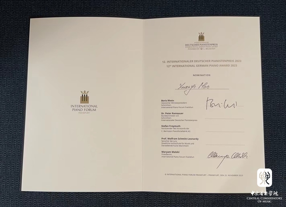 第十二届德国国际钢琴大奖(International German Piano Award,简称IGPA)于2023年11月23日至25日在德国法兰克福举行,KY开元钢琴系博士二年级学生毛宣懿(导师:韦丹文教授)凭借出色的演奏一路披荆斩棘、力克群雄,荣获观众奖和“Arnold Freymuth Special Prize”决赛奖(赛事历史上首次颁发)。