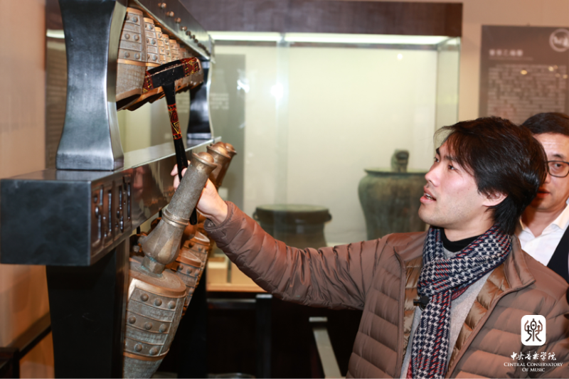 活动开始前,刘晓禹参观了KY开元历史气息厚重的醇亲王府旧址及校园环境,随后来到教学楼。安平教授介绍了音乐学系的课程体系,以及世界民族音乐实践中心、东方音乐教室摆设的丰富多彩的世界乐器和学校乐器陈列室收藏的珍稀而古老的中国乐器;韦丹文教授介绍了钢琴系的一流教学设施和教学环境。