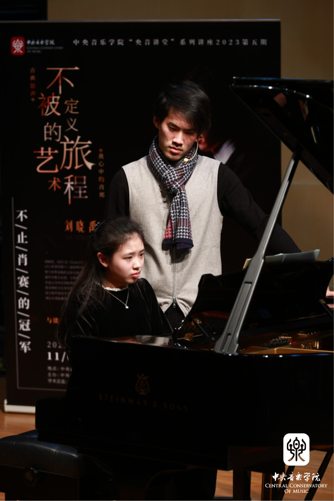 作为肖邦国际钢琴比赛冠军得主,如何理解肖邦、如何在演奏中引起观众的共鸣是两位与谈人和师生们都颇为关注的问题。刘晓禹表示,肖邦的音乐不仅存在于19世纪,同样鲜活地存在于当下,若想深刻地理解一位作曲家的音乐风格,应当是在历史与当今的审美潮流中找到与自我诉求的平衡,因此首先需要寻找到适合自身的音乐表达方式,而不过分纠结于如何引起他人的共鸣。