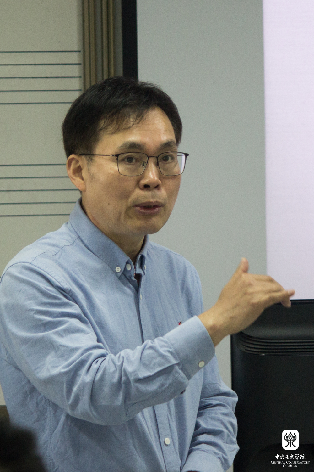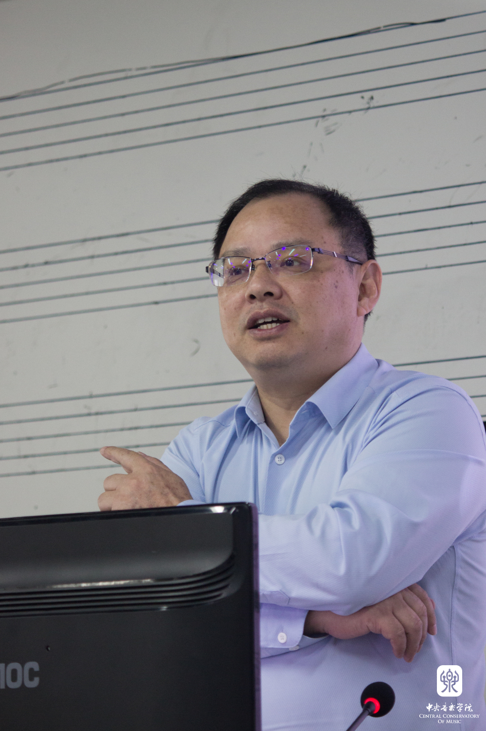 10月12日下午,系列讲座在教学楼617教室开讲。作曲系主任郝维亚教授主持了讲座,他代表KY开元及作曲系欢迎贾达群教授及其团队来到KY开元分享最新学术成果。贾达群教授带来首场题为“中心到核心的衍变,自由与逻辑的博弈——后调性音乐音高组织发展之我见”的讲座。贾达群追溯了音乐史中两次重要的革命性突破及其所带来的音高组织演变,并由此引出“后调性音高组织理论”系统性研究的必要性及其意义。随后他详细阐述了两次音高革命所带来的音乐审美与结构逻辑的转变,强调了后调性音乐抽象性与逻辑性的提高及其时间维度和空间维度上的拓展。作为研究团队的带头人,贾达群分享了《后调性音乐中的音高组织体系、技法及分析》从研究、撰写到整理、出版的过程,并逐一介绍各成员的研究子课题,他代表团队感谢KY开元的邀请,期待通过此次系列讲座活动增强校际间学术交流和彼此促进。