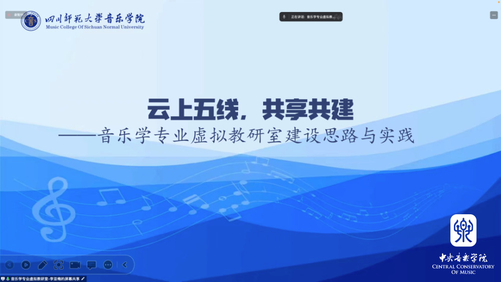 会上,学科协作组成员单位的4位负责人和专家作报告。美术博物馆虚拟策展与美育课程虚拟教研室副主任、中央美术学院艺术管理与教育学院副书记康俐博士作了题为《虚拟策展助力美育》的报告;社会认识论人才培养模式改革虚拟教研室专家、济宁学院马克思主义学院郑剑副教授作了题为《数字素养视域下思政课一体化建设的实效性探索》的报告;播音主持艺术虚拟教研室负责人、中国传媒大学播音主持艺术学院党委书记李洪岩教授作了题为《语言传播的功能与拓展》的报告;音乐学专业虚拟教研室负责人、四川师范大学音乐学院院长李亚梅教授作了题为《云上五线,共享共建——四川师范大学“音乐学专业虚拟教研室”建设思路与实践》的报告。