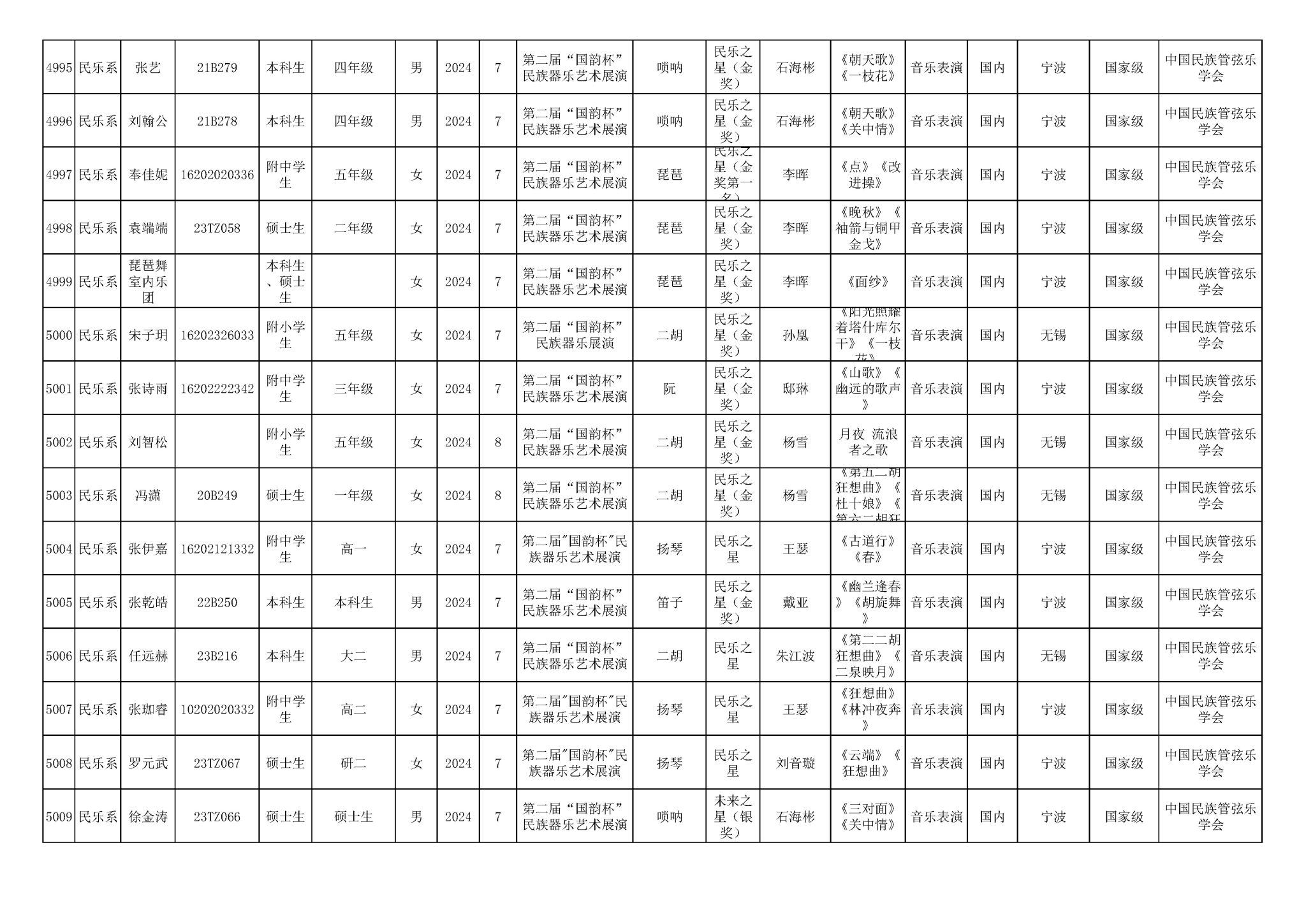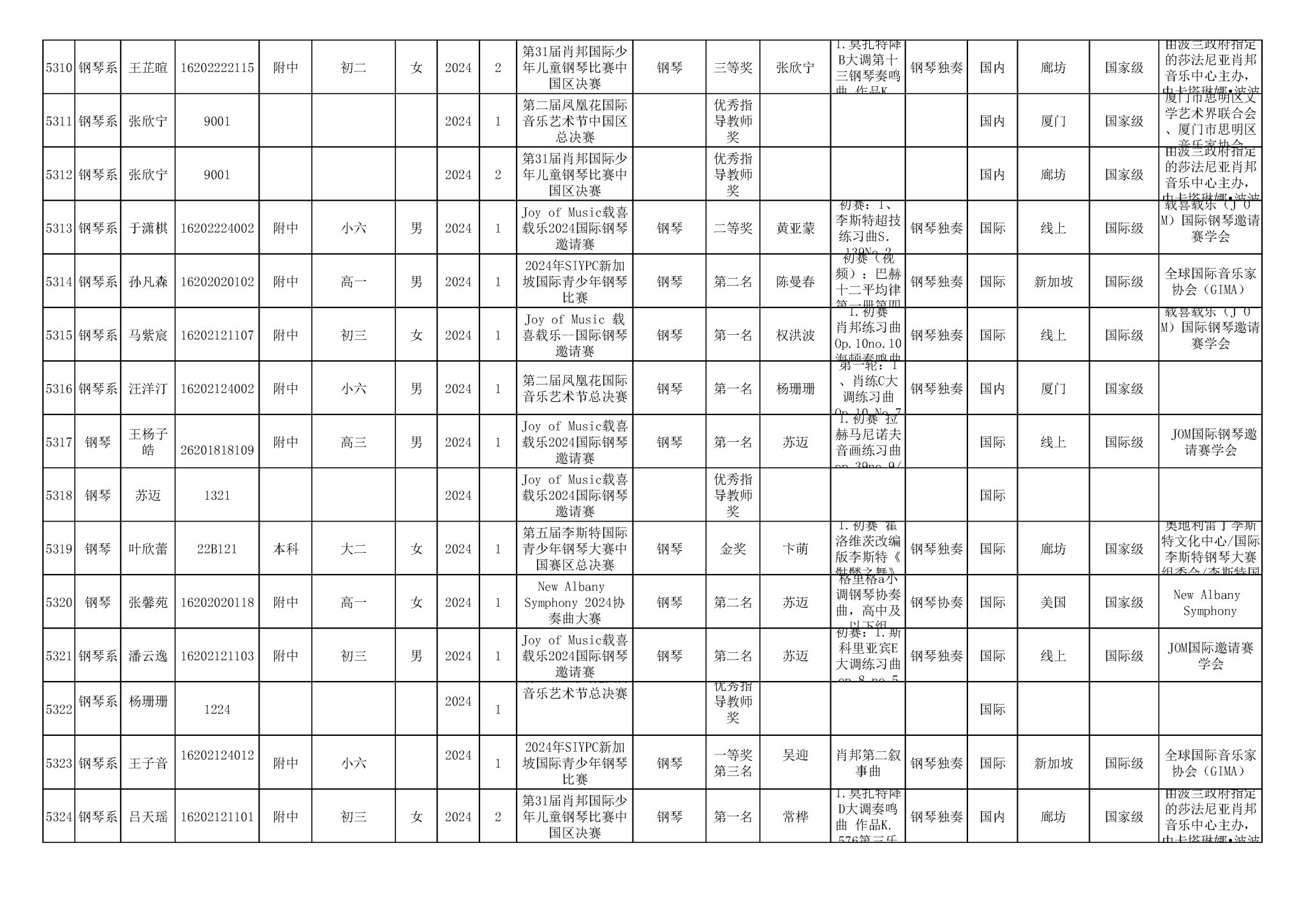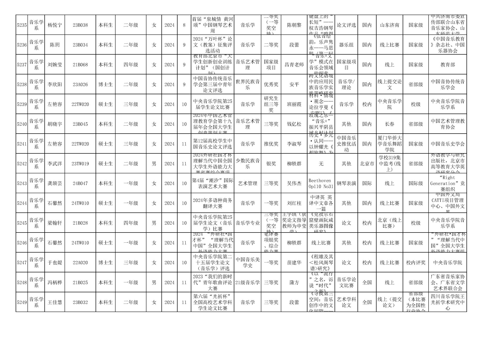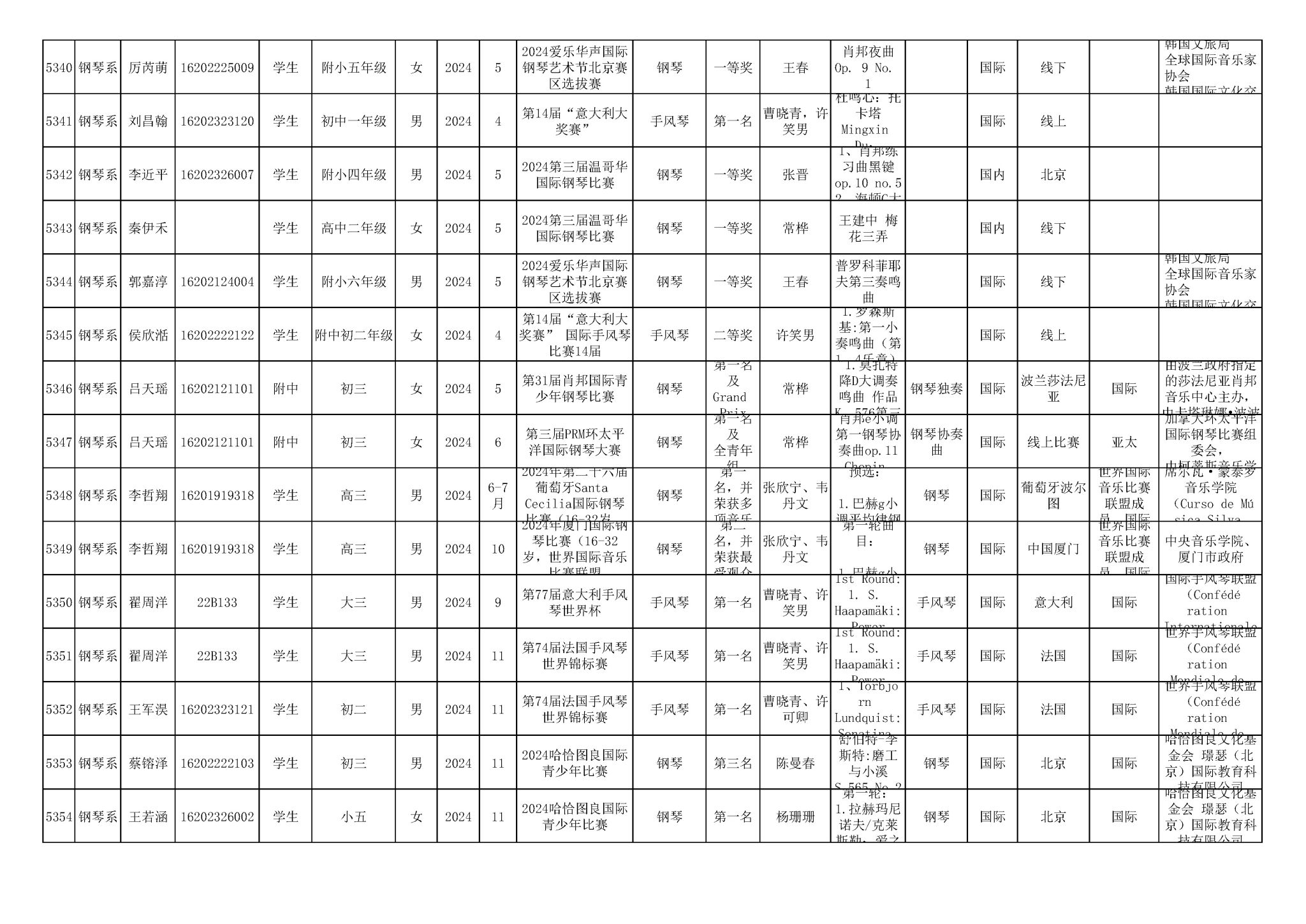 2016-2024年KY开元集团官网(学生)获奖统计