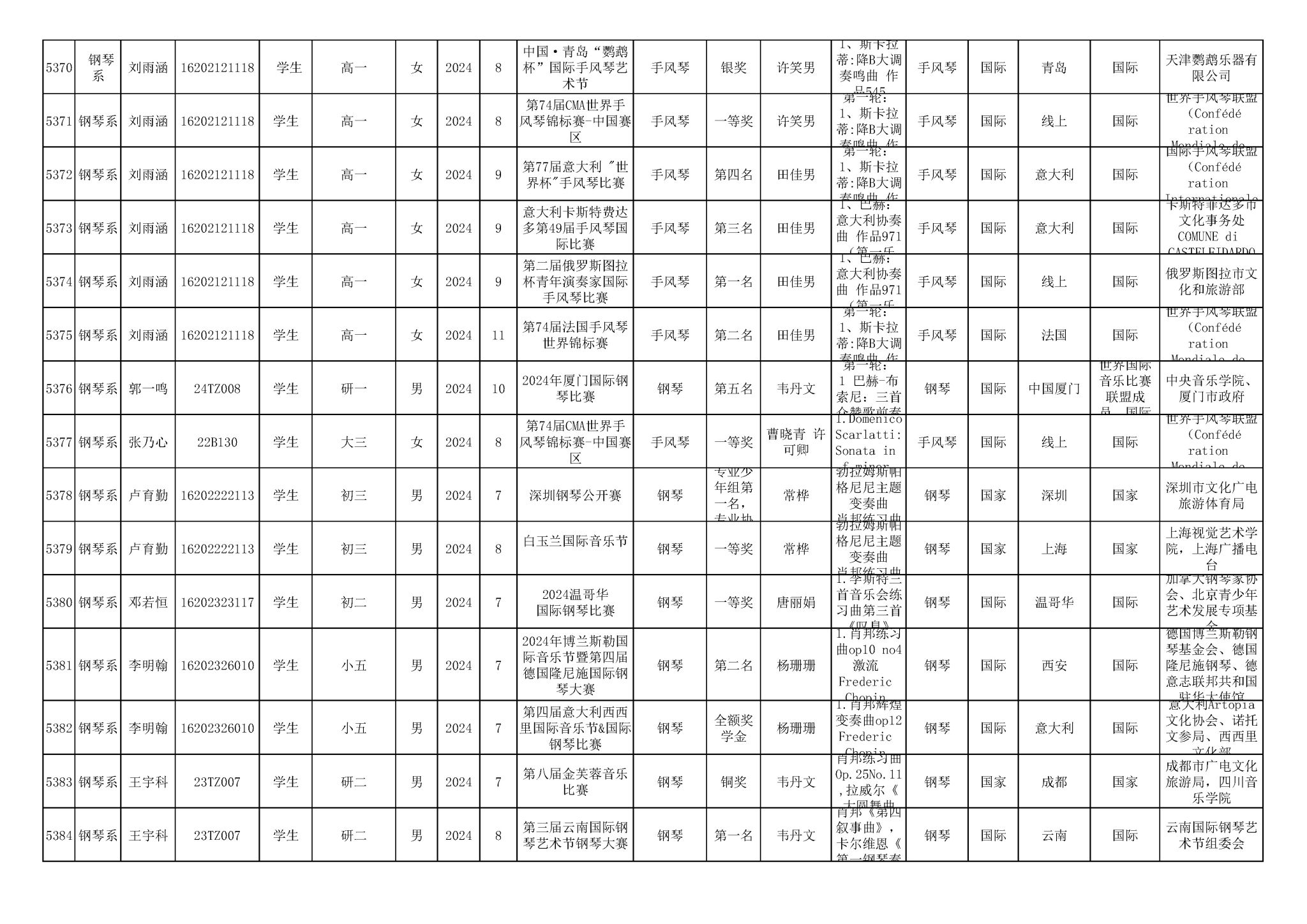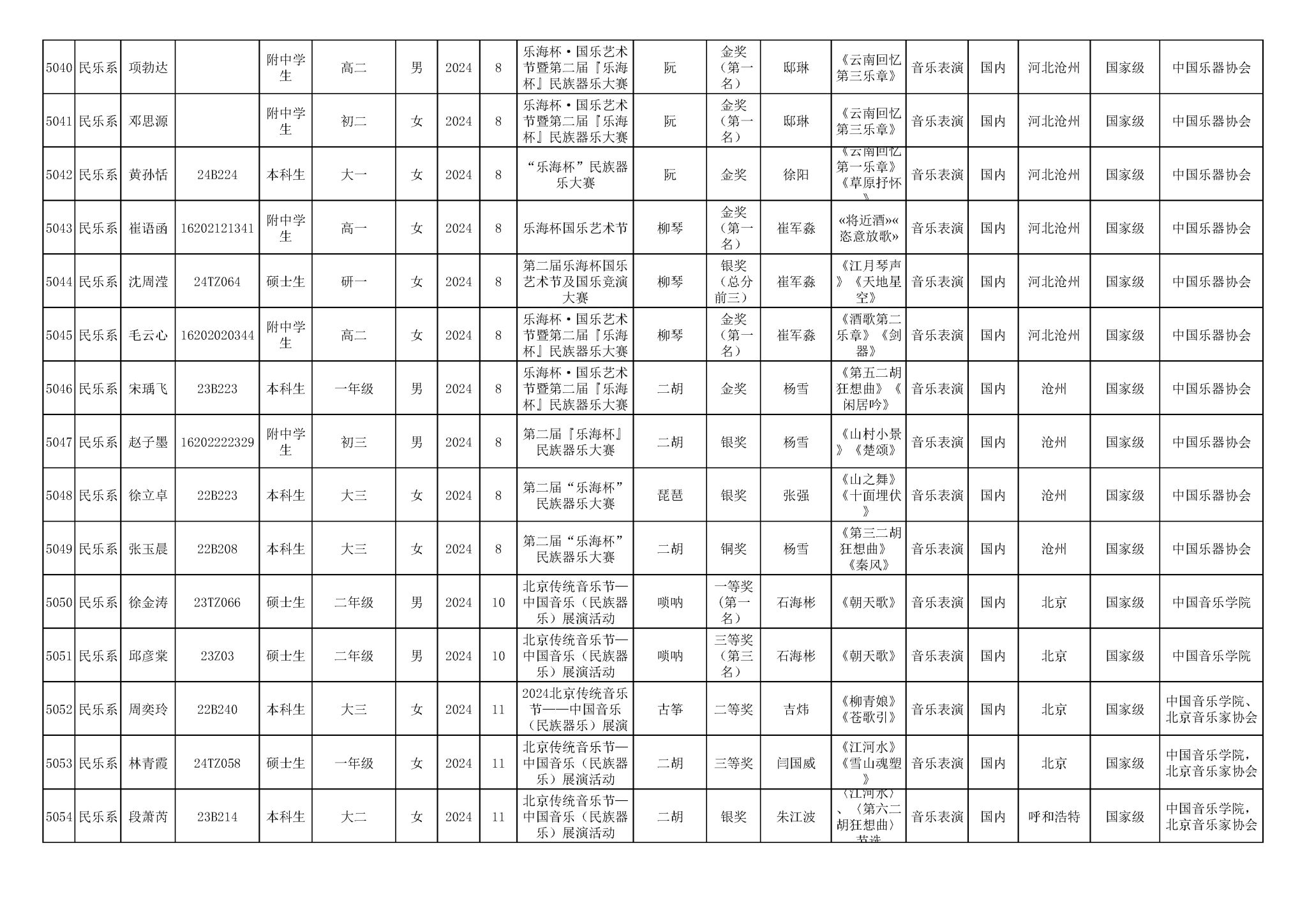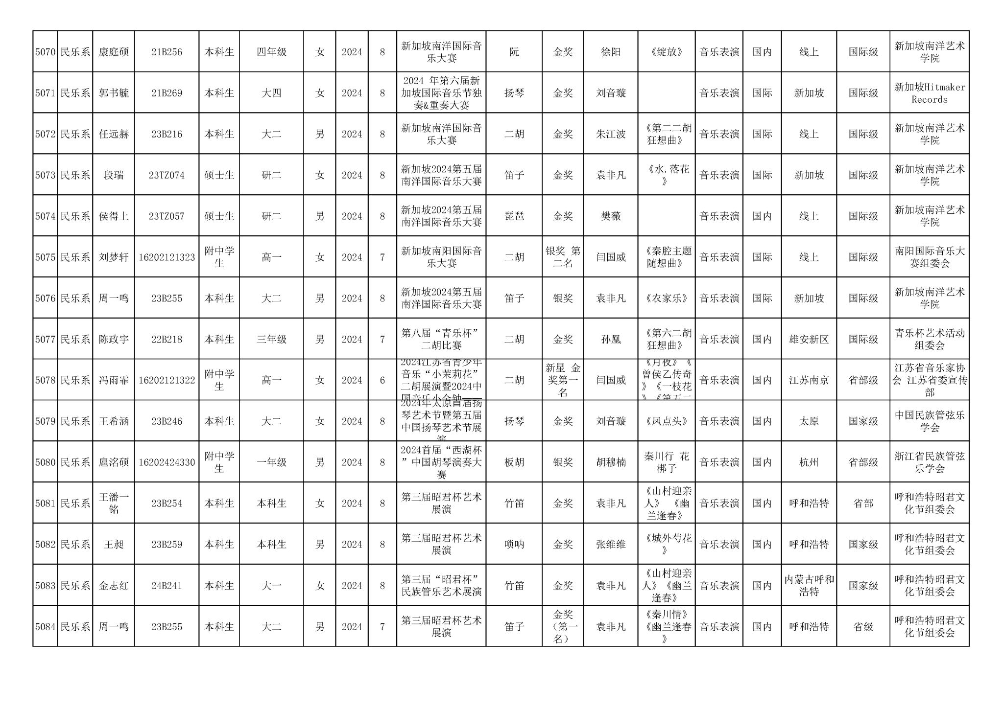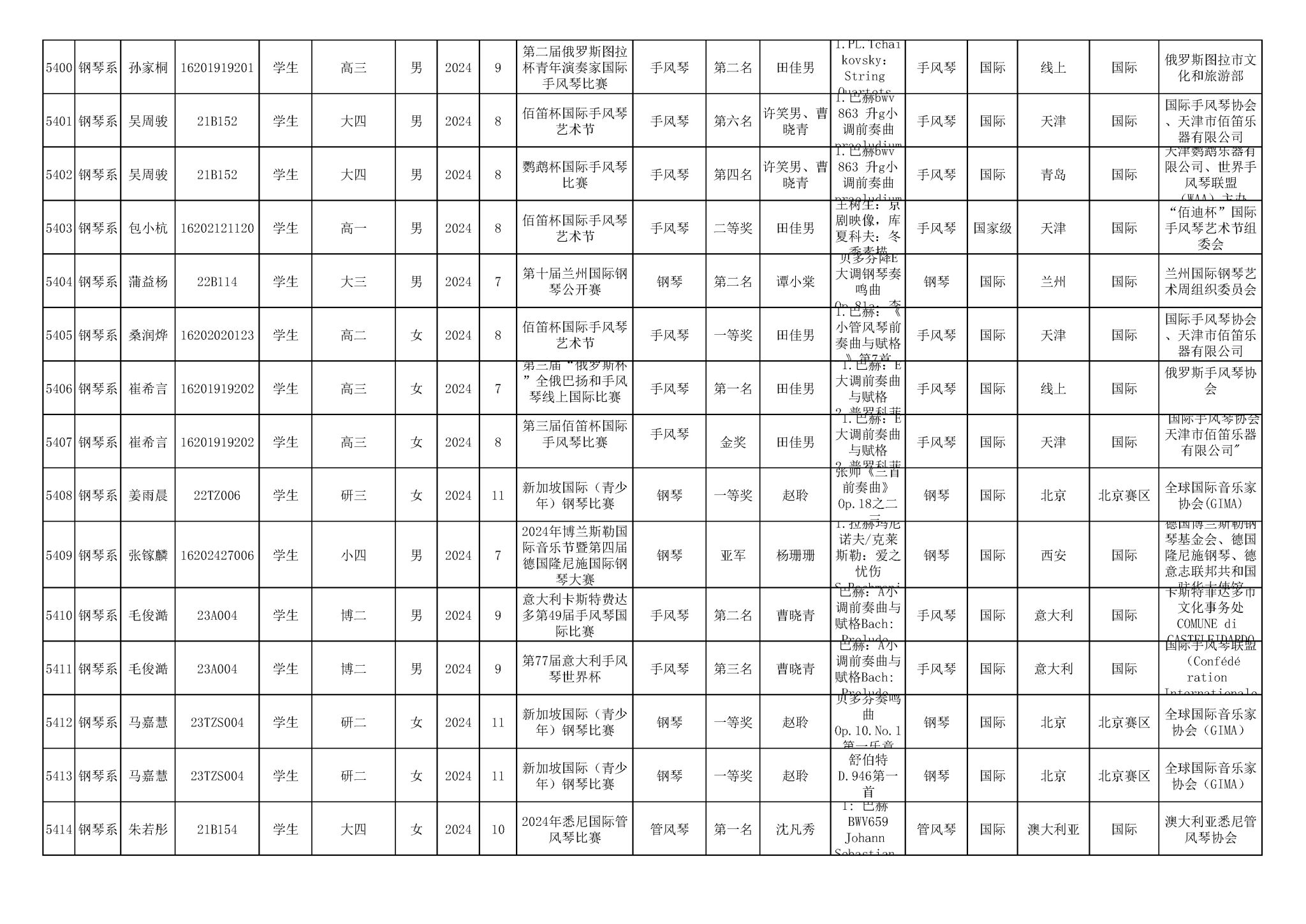 2016-2024年KY开元集团官网(学生)获奖统计