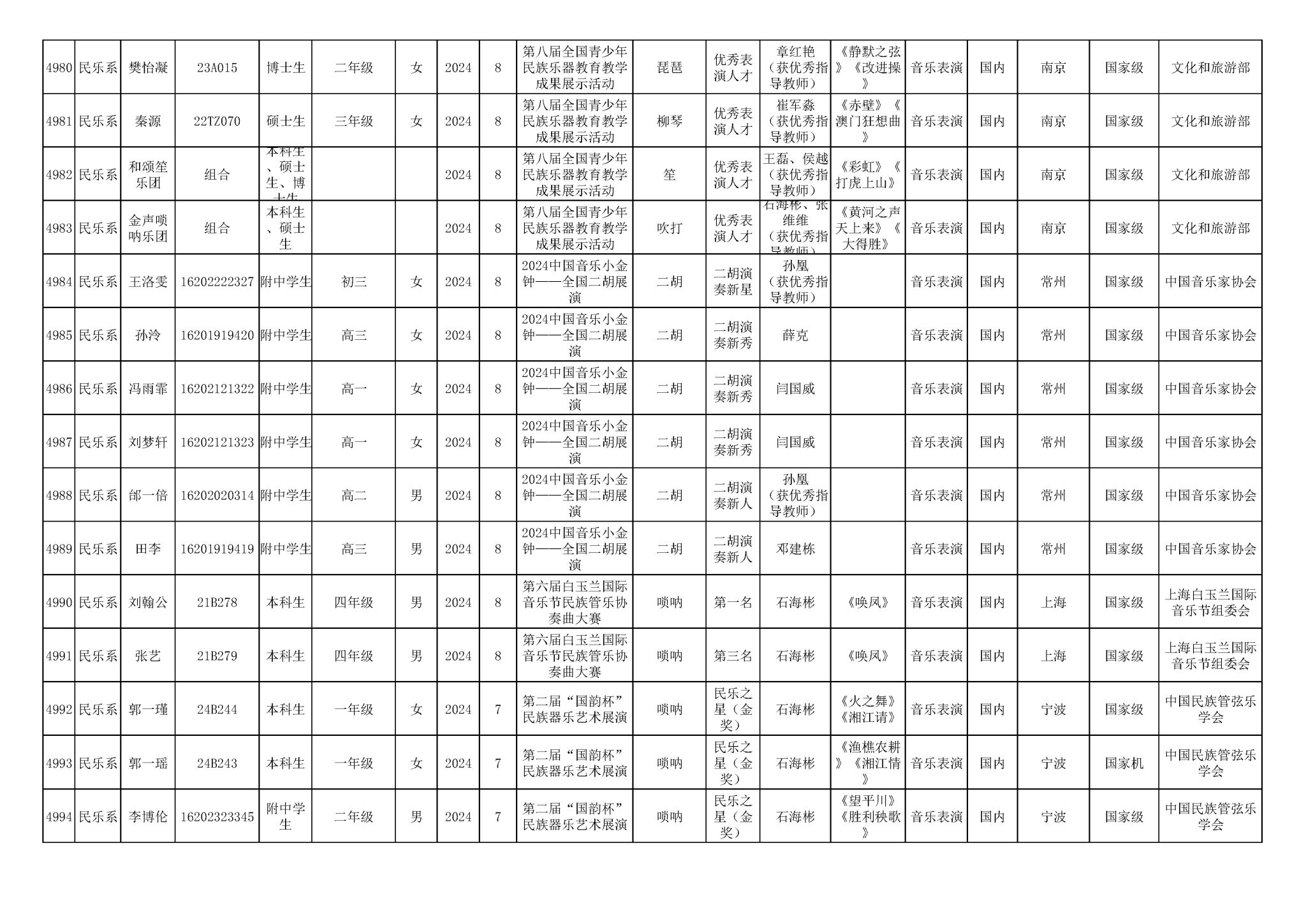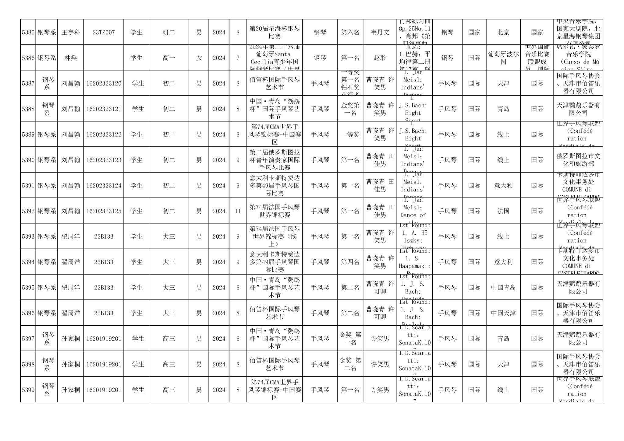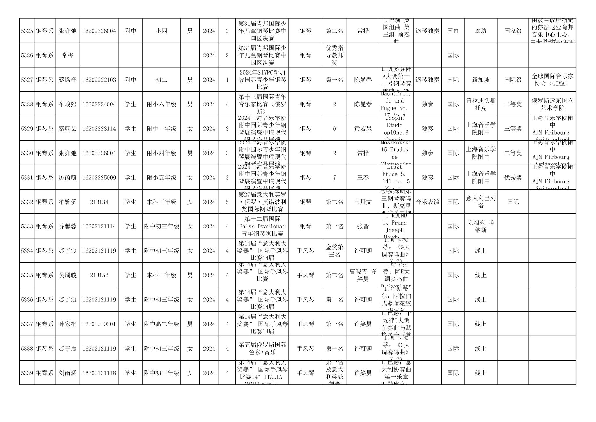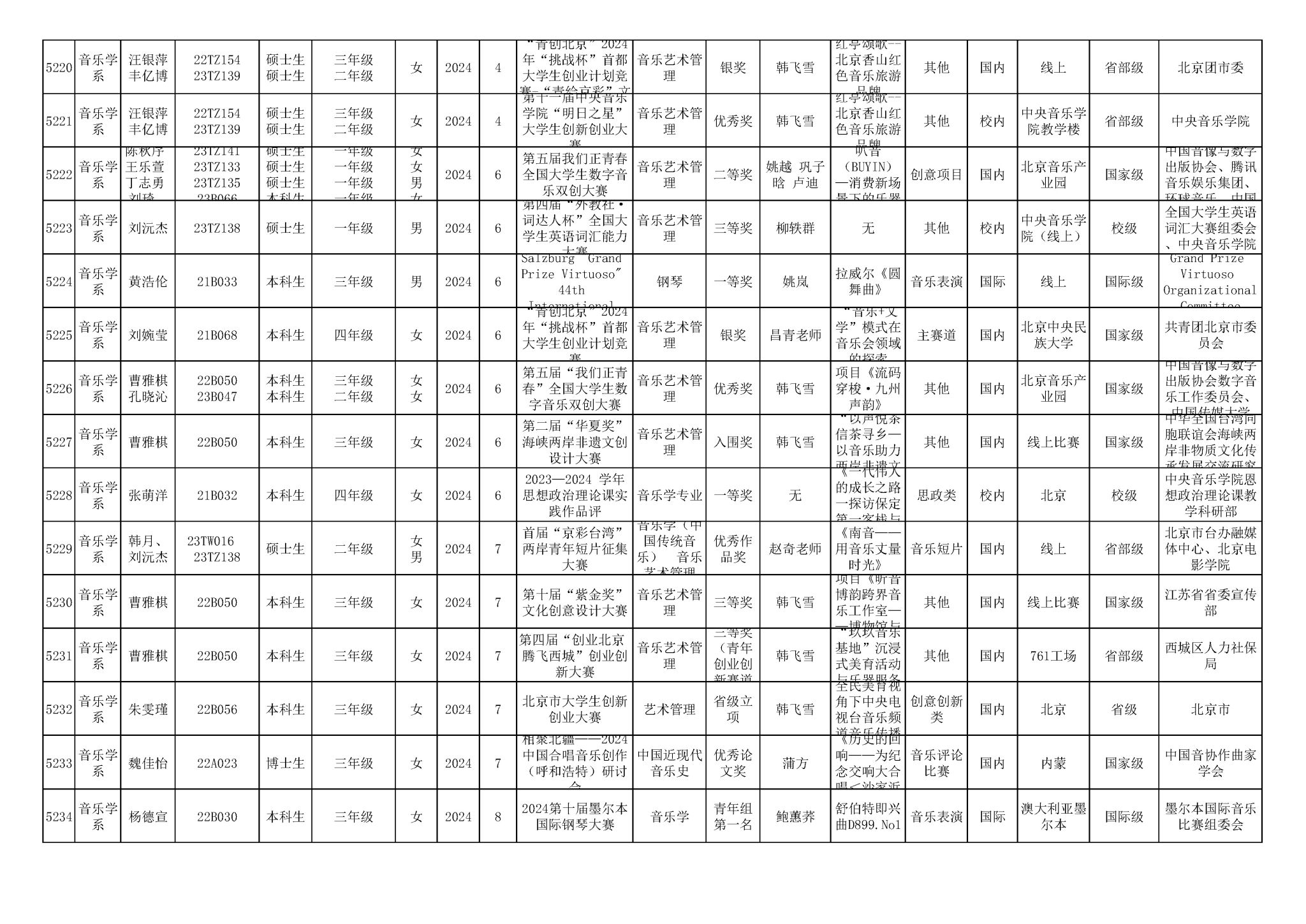 2016-2024年KY开元集团官网(学生)获奖统计