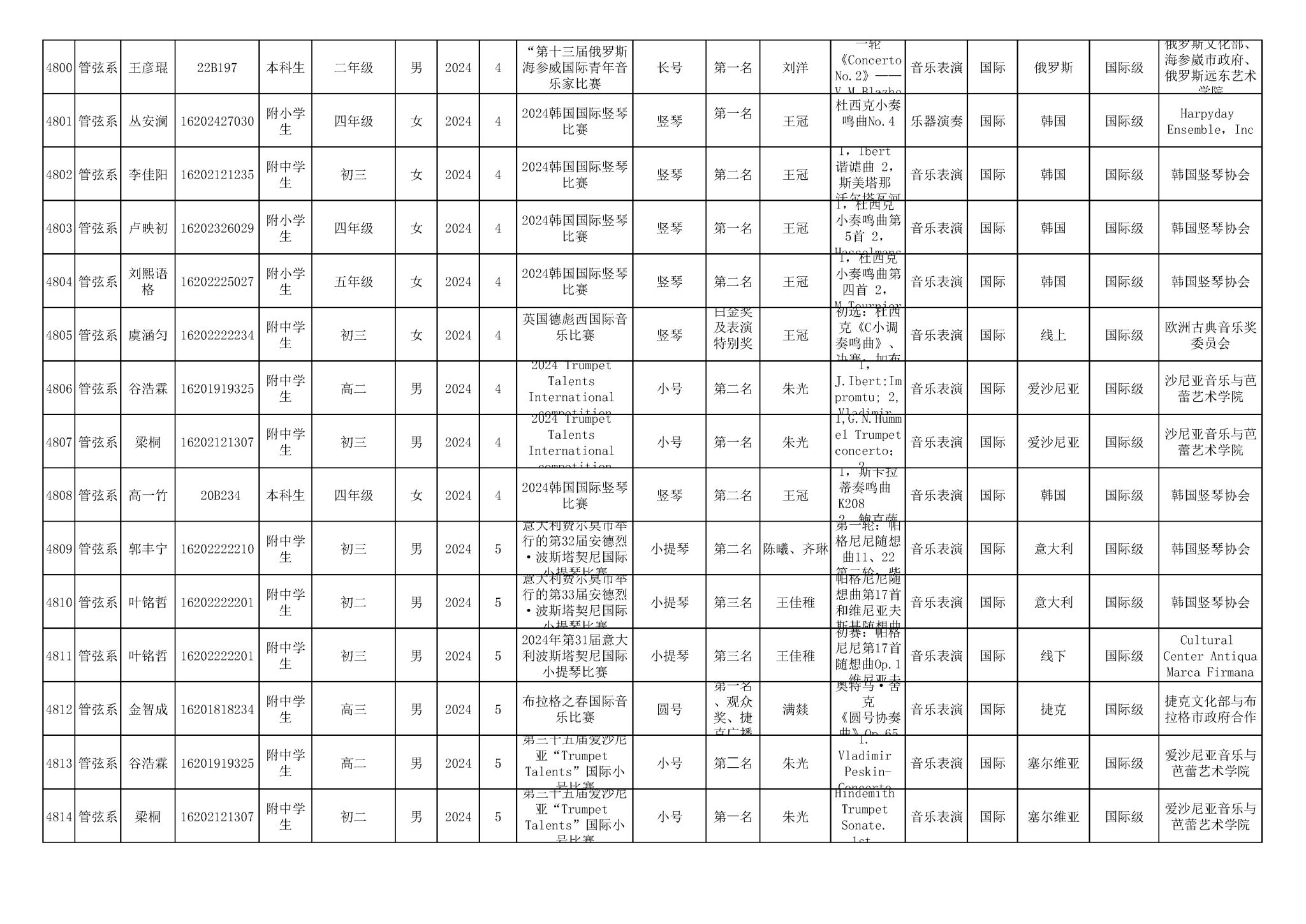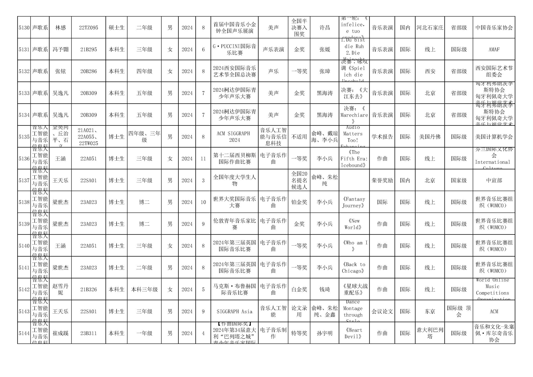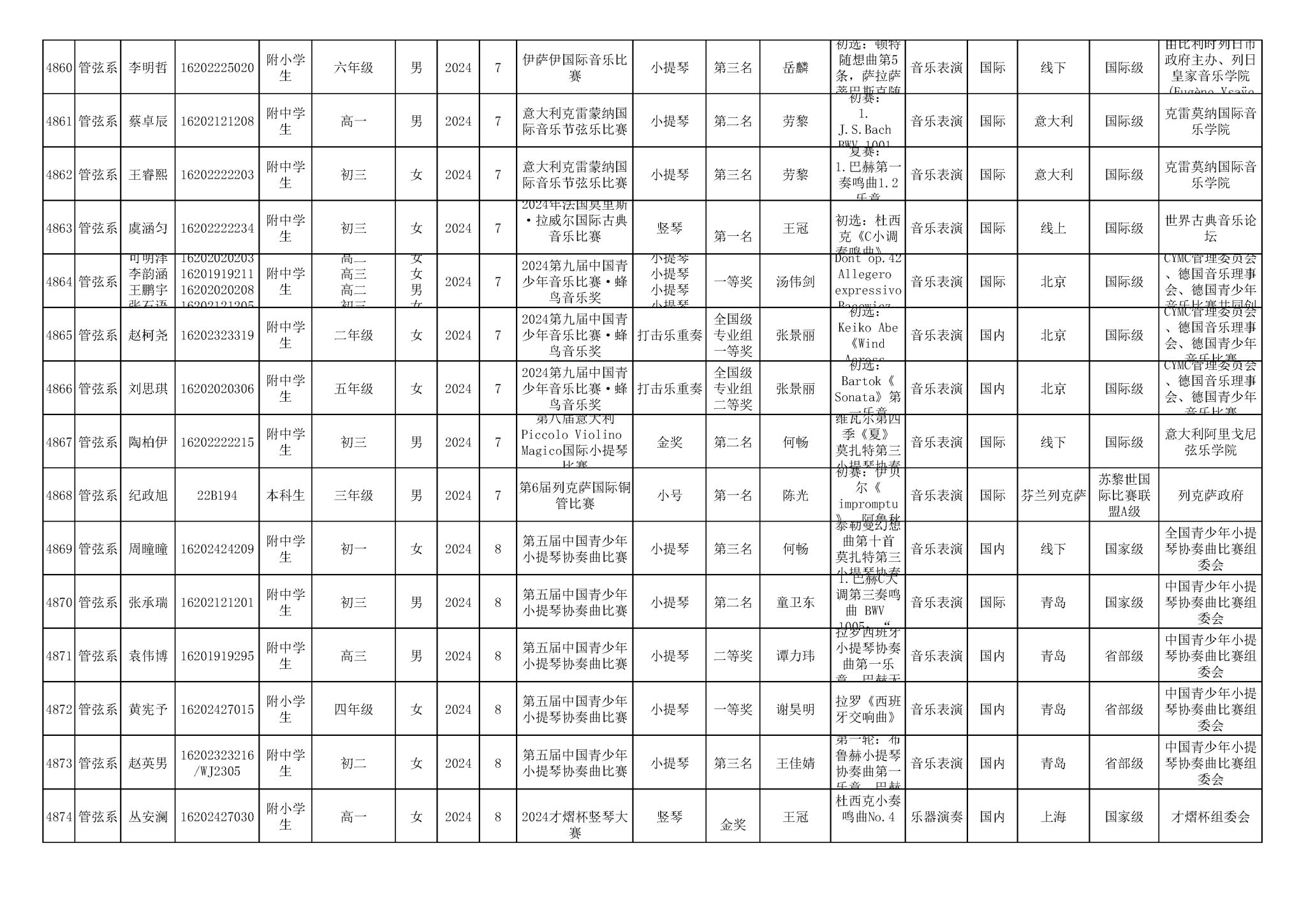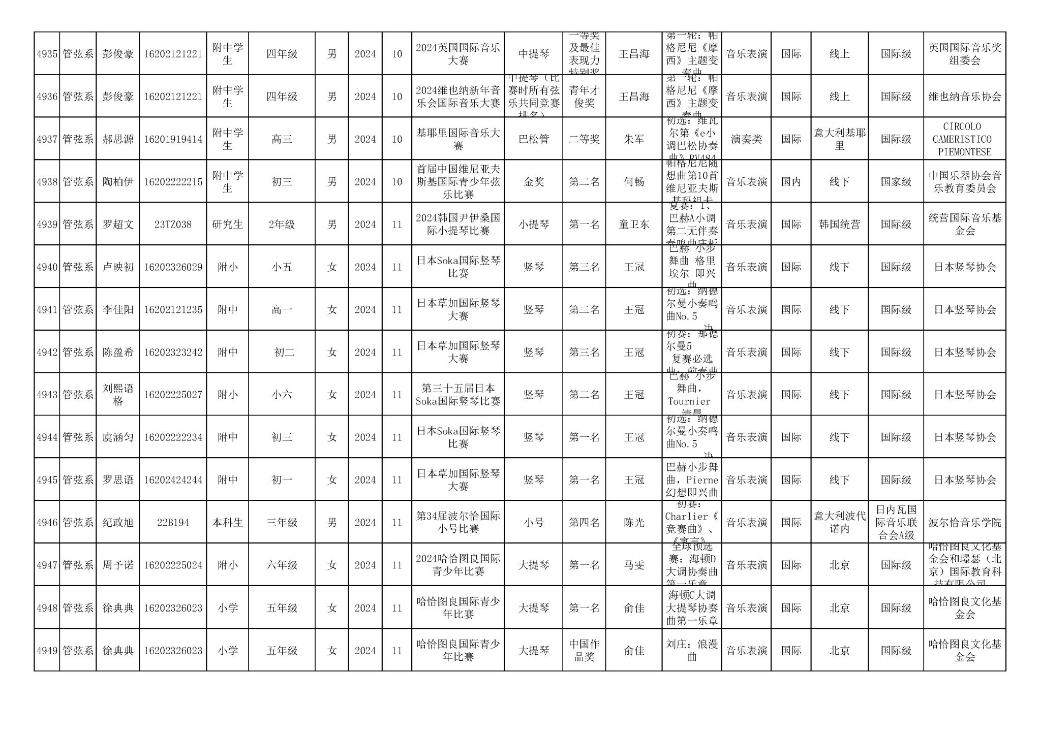 2016-2024年KY开元集团官网(学生)获奖统计