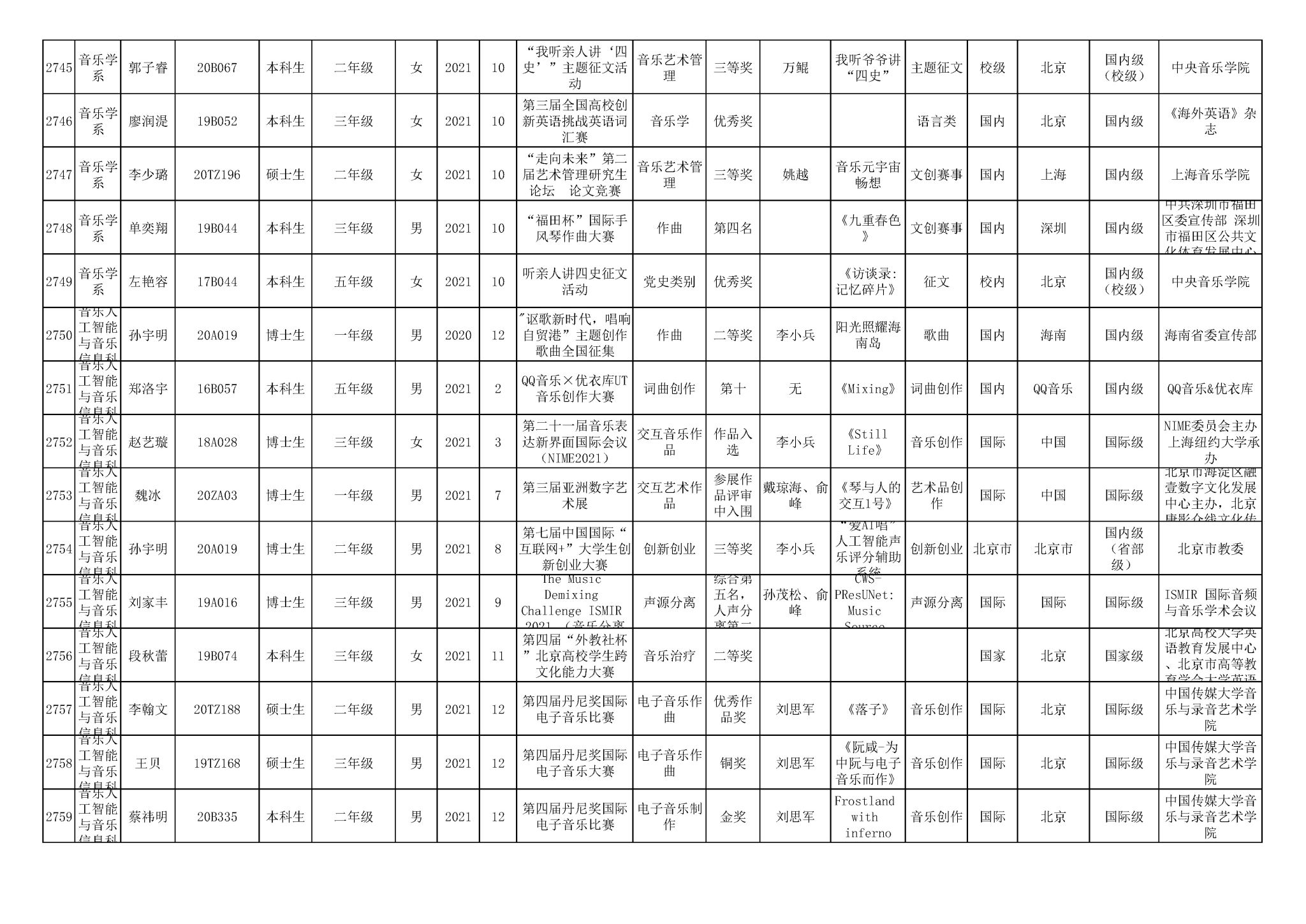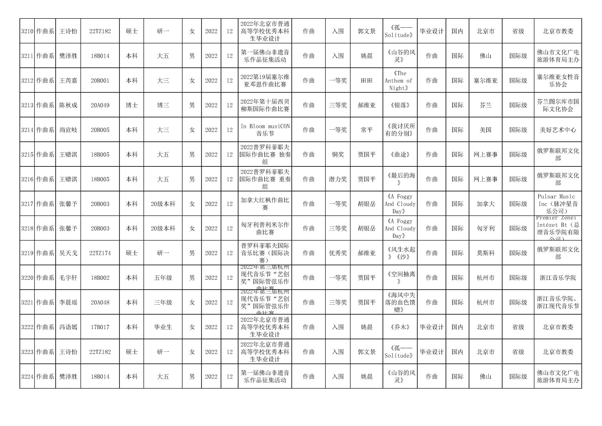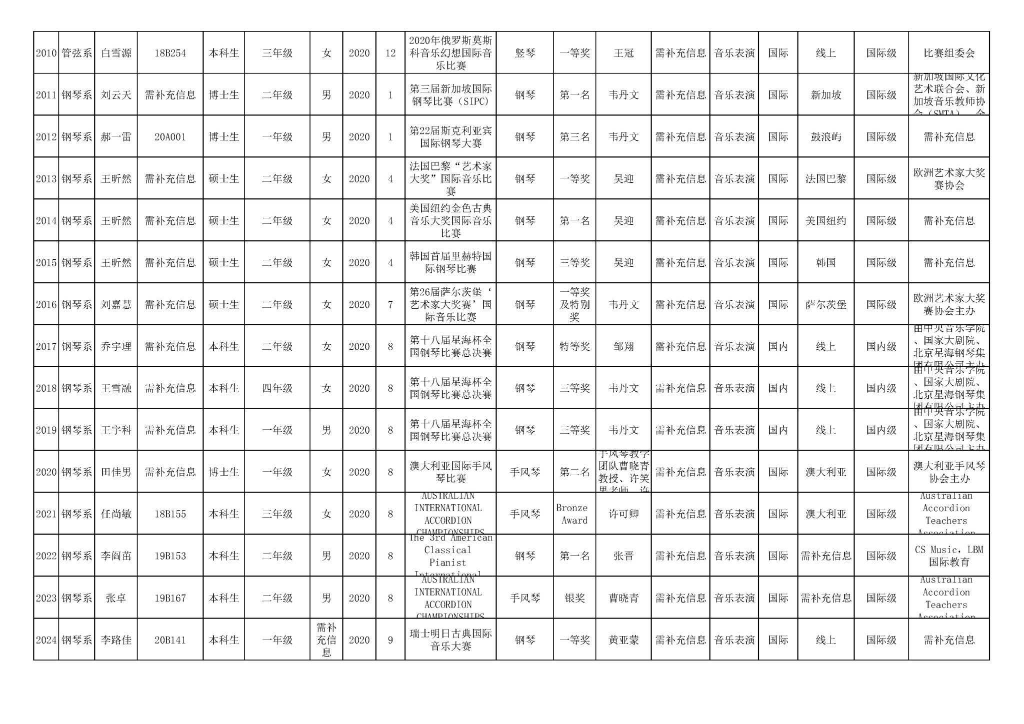 获奖信息