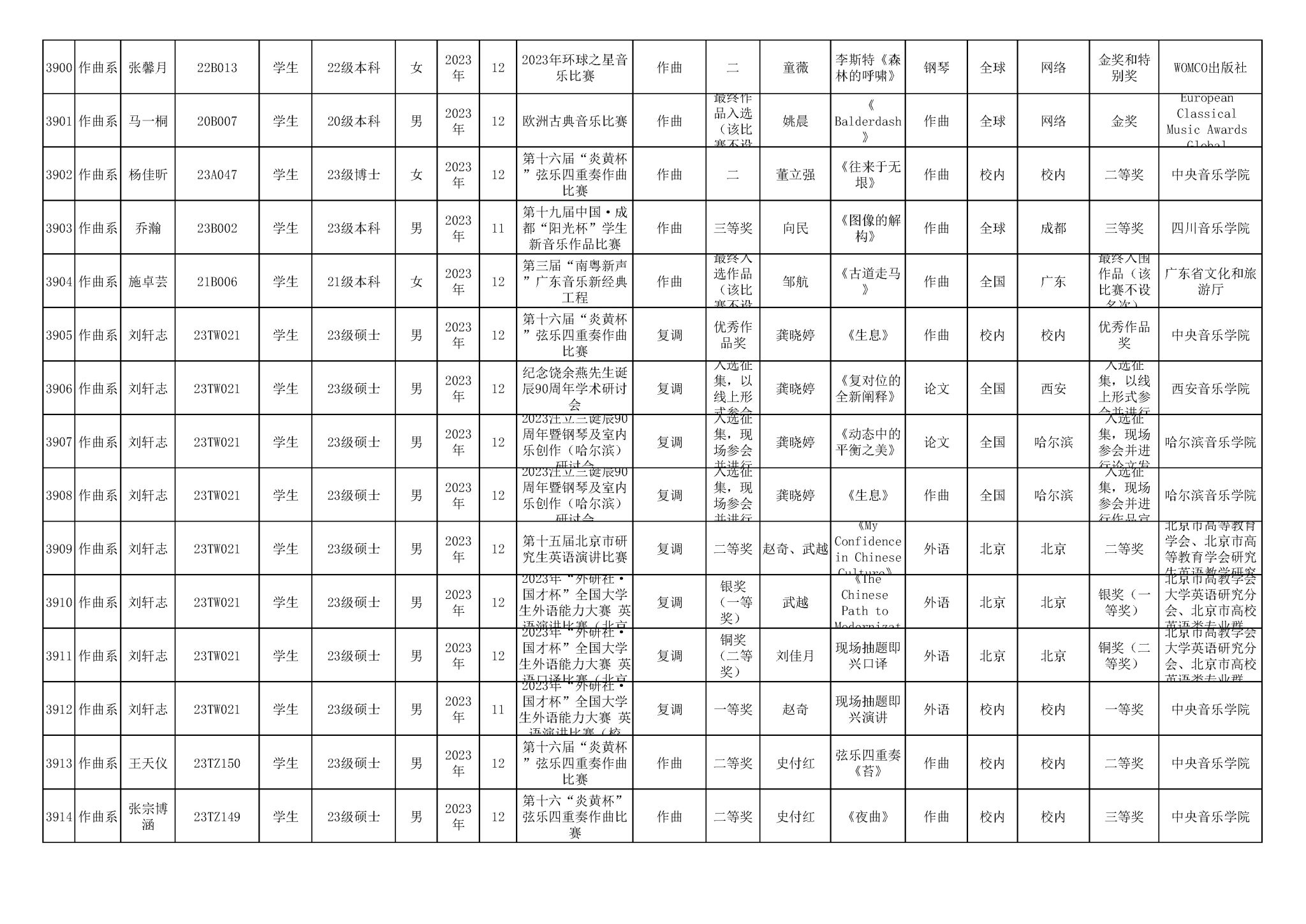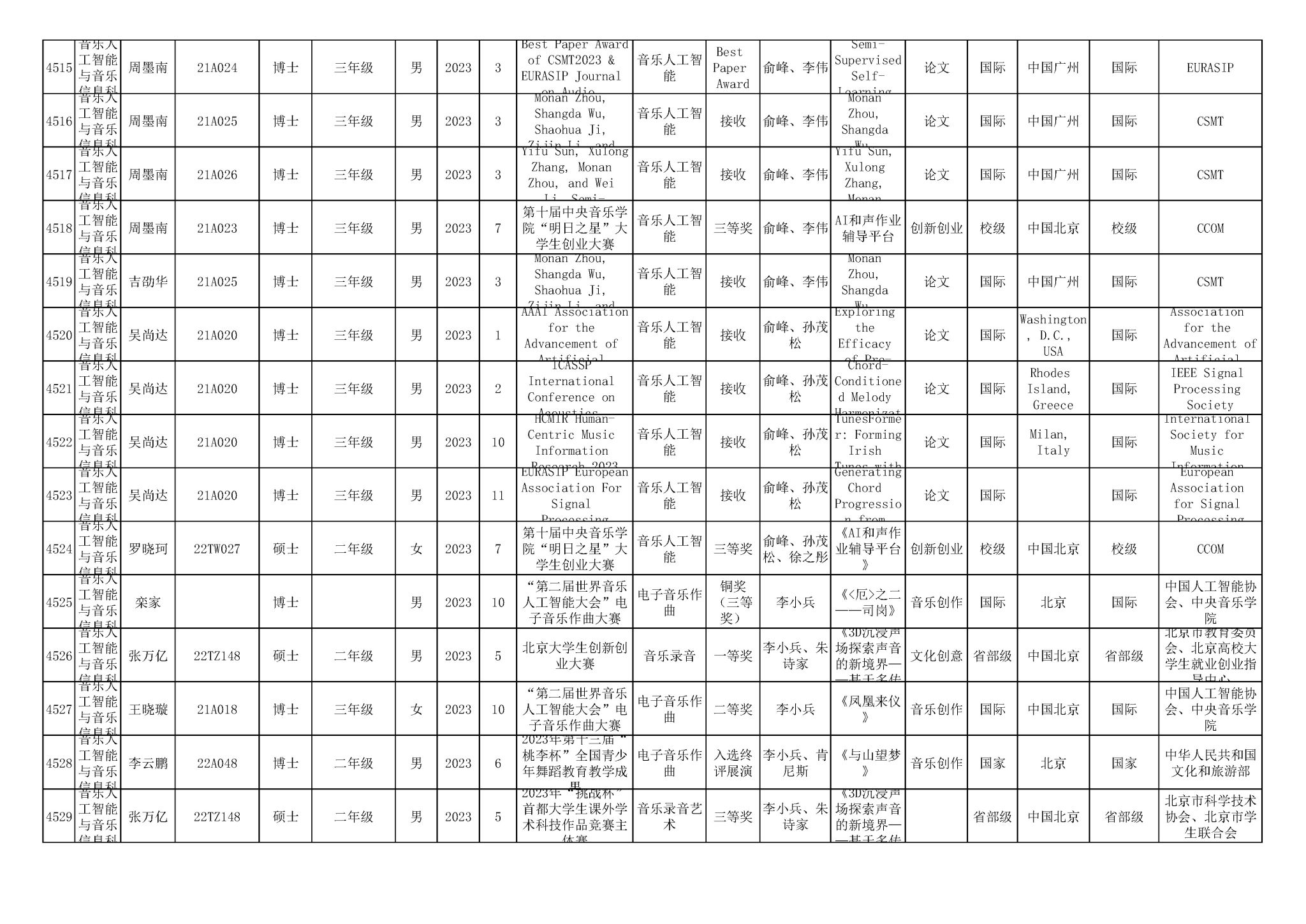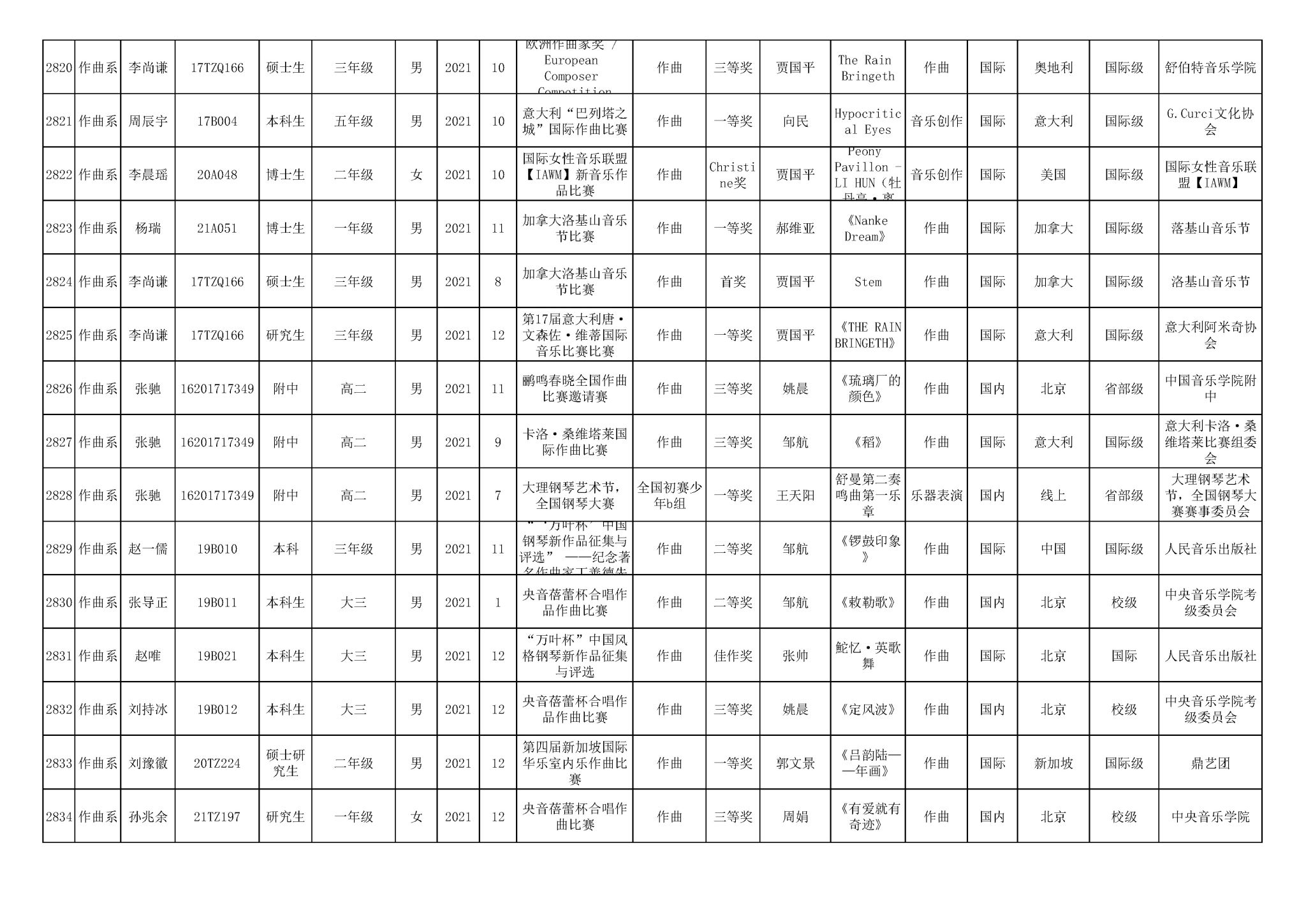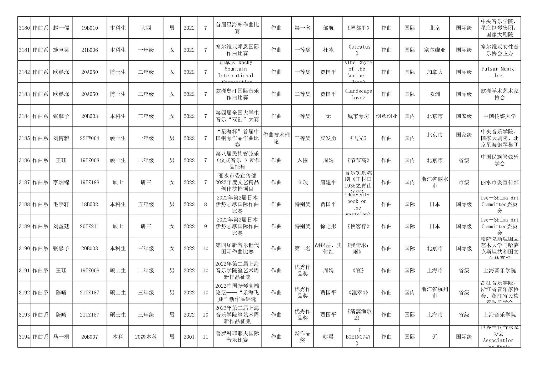获奖信息