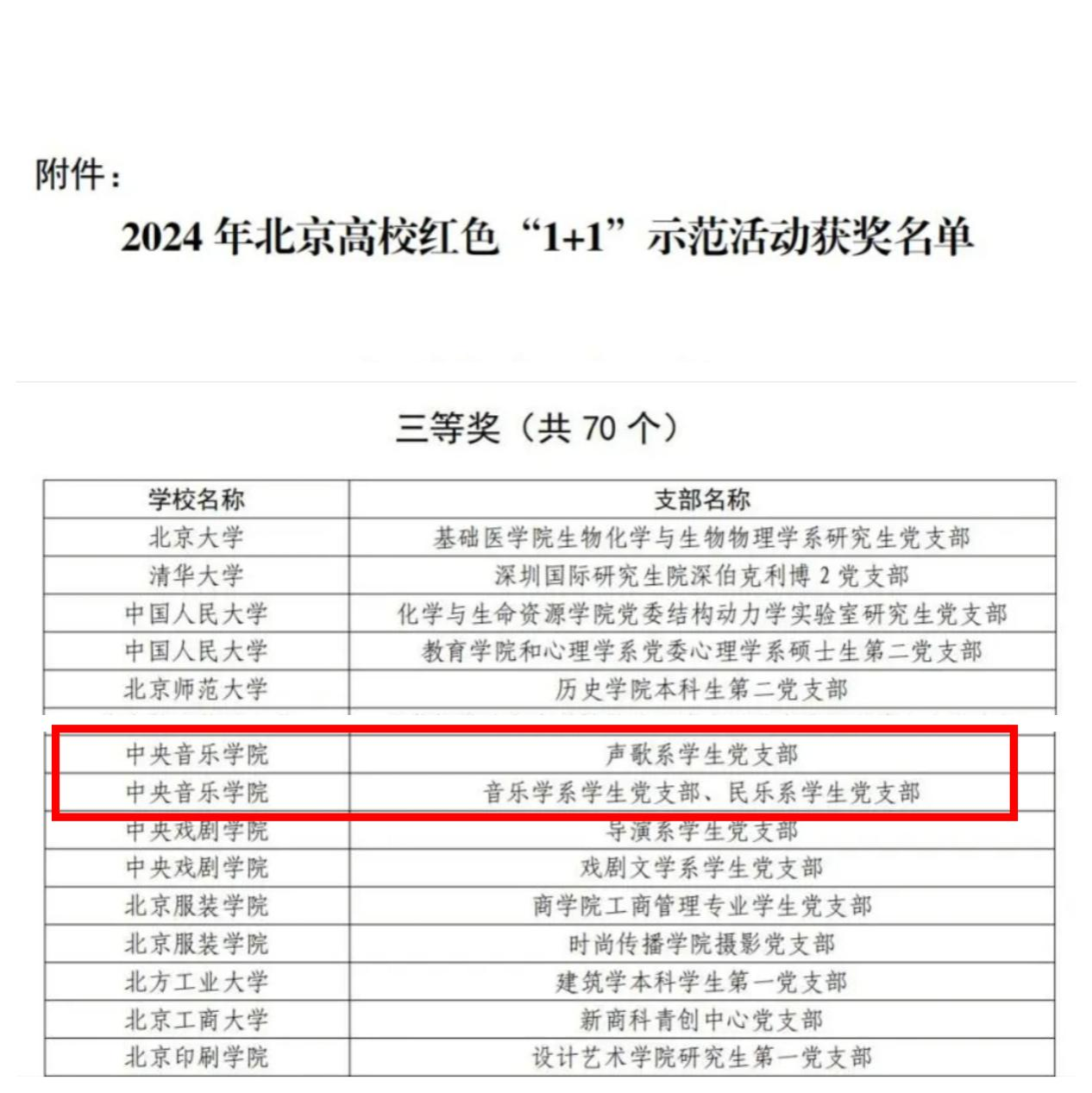 近日,北京市委教育工委公布了2024年北京高校红色“1+1”示范活动的评选结果,KY开元声歌系学生党支部、音乐学系学生党支部和民乐系学生党支部从申报的1777个学生党支部中脱颖而出,荣获2个三等奖。