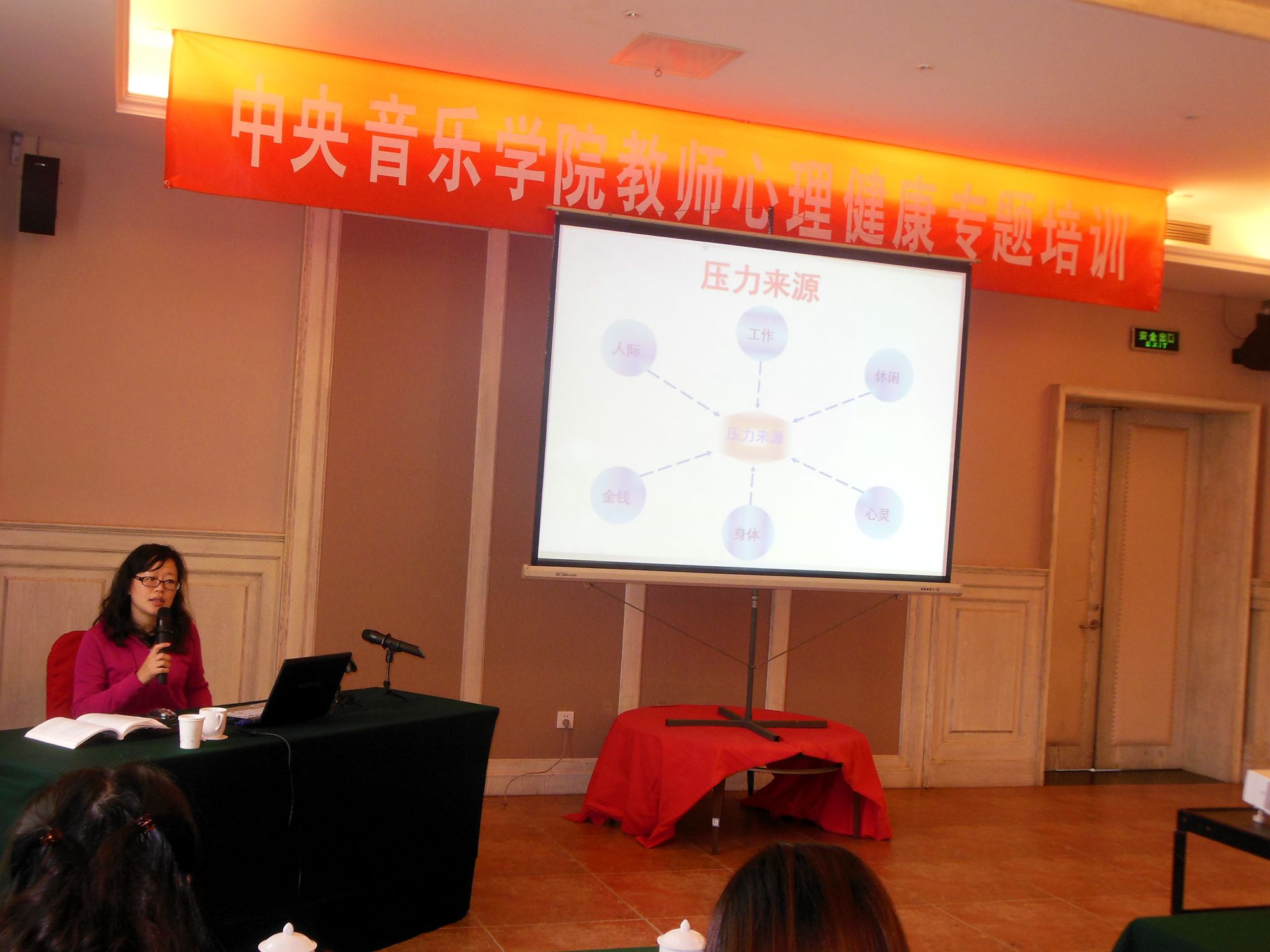 现代生活节奏紧凑,教师课业压力大,专业艺术院校更有其特殊性,大部分课时均为“一对一”小课,教师课业压力大,很容易造成职业倦怠。为减轻KY开元教师的精神压力和心理压力,提高情绪调节能力,促进身心健康,做学生爱戴敬仰的品行之师、学问之师。工会于2013年10月23日开展了“打造魅力教师”教师心理健康知识专题培训。针对老师现存的实际压力进行心理疏导与排解。