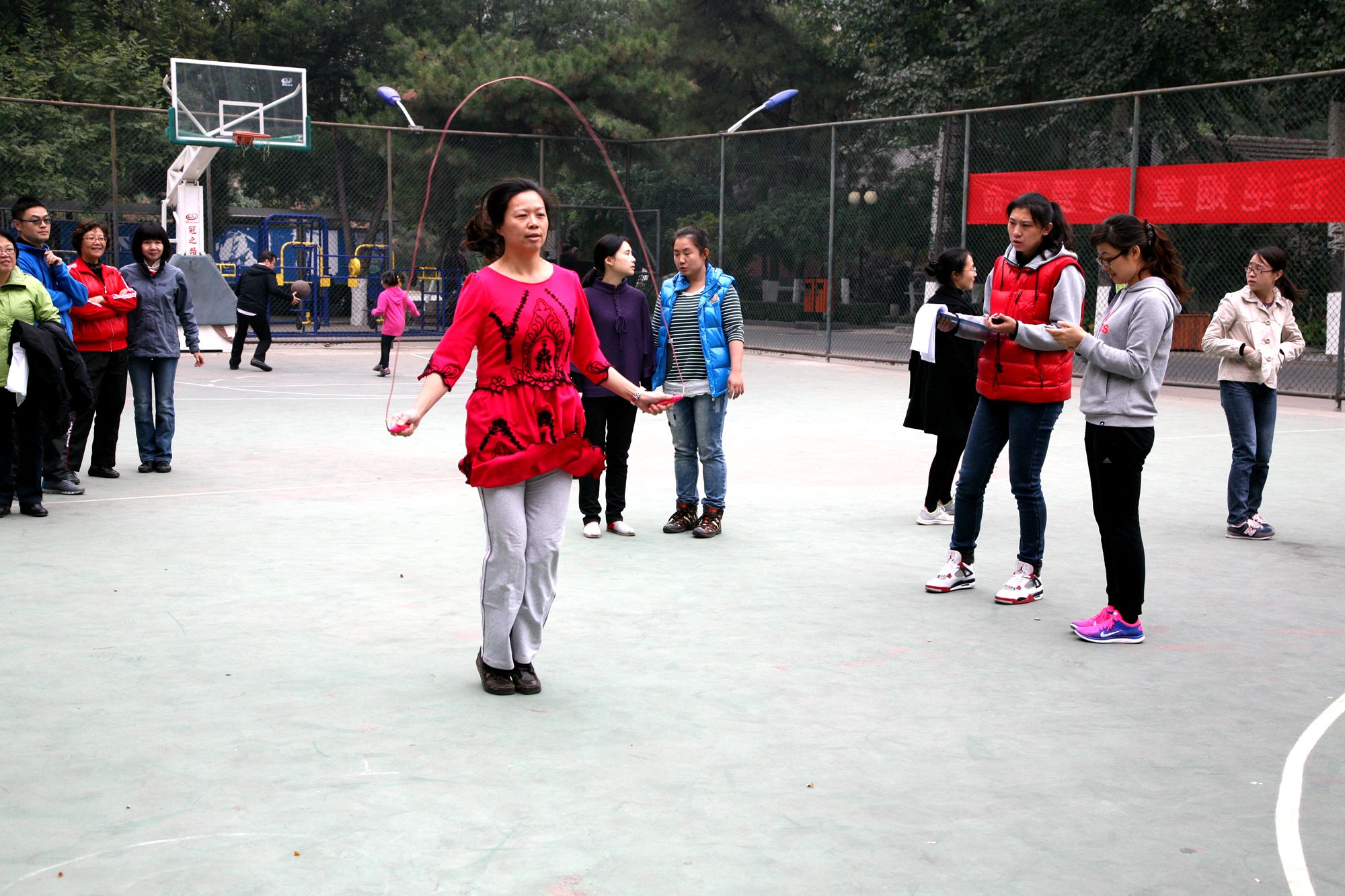 本次的运动会的主题是“我健康我快乐,共建和谐校园”。运动会由集体项目和个人单项比赛组成,集体项目共设二项:定点投篮、托球跑。个人单项比赛:跳绳、踢毽、沙包掷准、推铁环跑。定点投篮的前三名分别是:网络中心、计财处、出版社。学报、音乐学系、网络中心分别获得集体项目托球跑比赛的前三名。