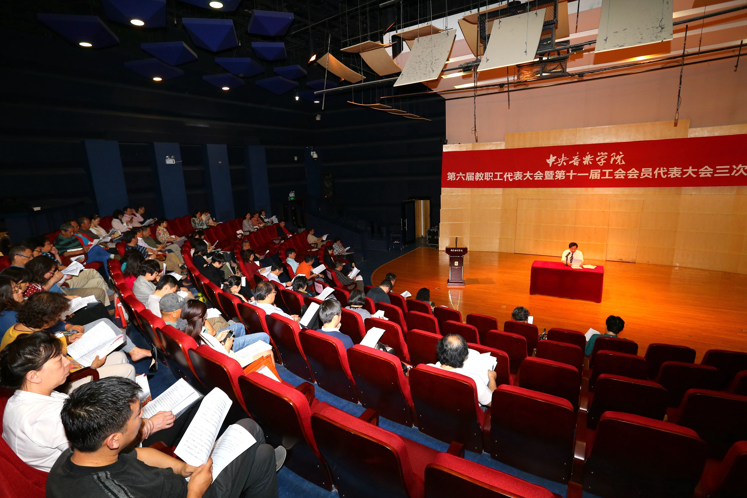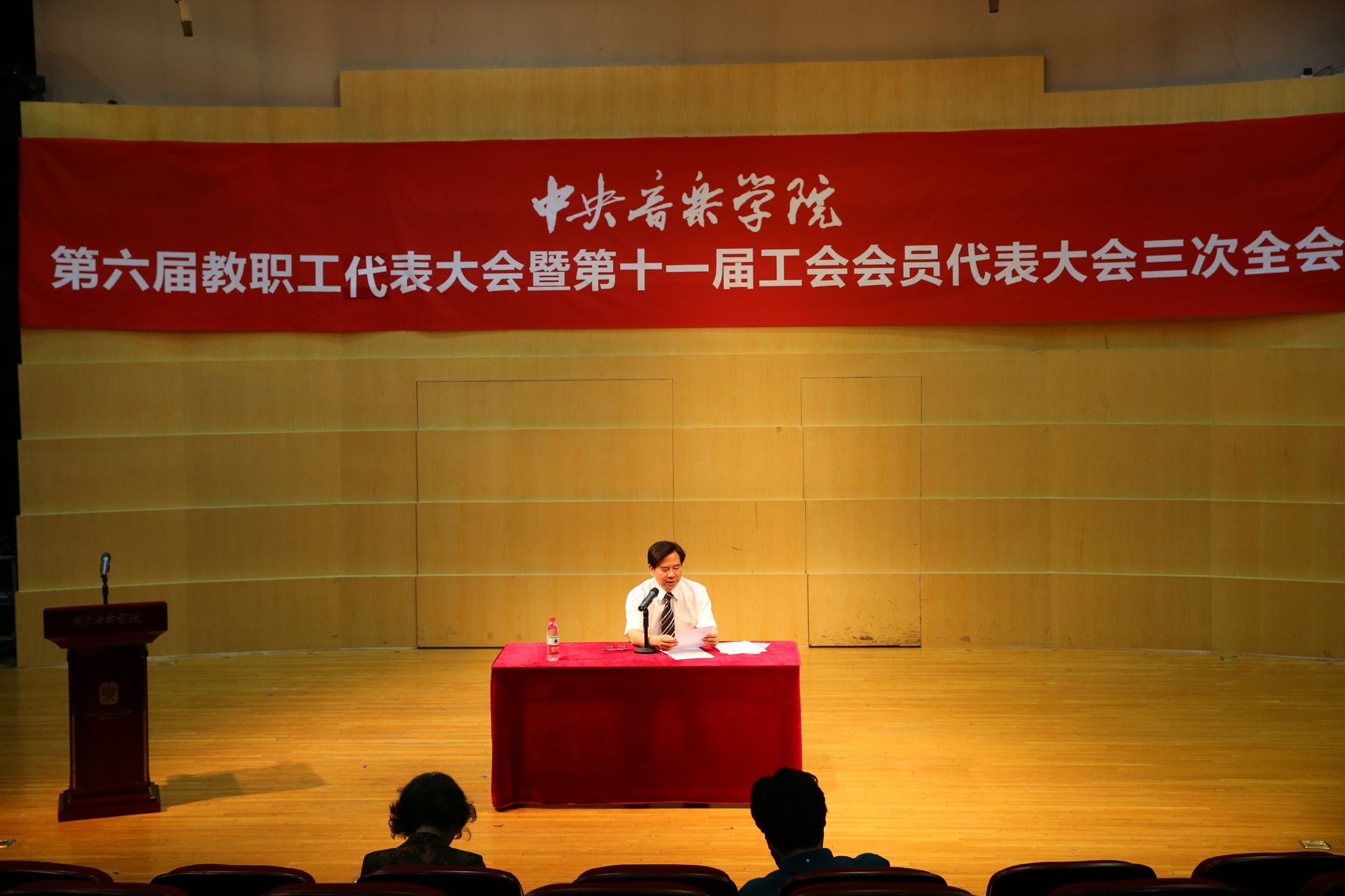 王次炤院长代表学院领导班子做的《2014年院长工作报告》,从民主决策和依法治校工作;教学和艺术实践工作;科研、对外交流与重大学术活动管理;图书馆、学报、学位及艺术硕士教指委办公室工作;学生和就业工作;人事、财务、国有资产和基本建设工作;网络建设、校园管理、安全保卫和离退休工作;继续教育、远程教育、社会音乐教育和基金会工作,八个方面全面总结了过去一年来学校各个部门的工作和取得的成绩。报告最后也指出学校发展目前存在的五方面问题。王院长指出,这些问题的解决措施将在新学年和学期的工作要点和工作规划中体现出来,希望通过领导班子和全体教职员工、学生的共同努力得到解决。