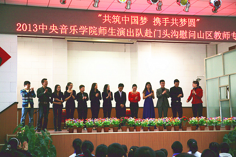 学院党委一向重视青年教师师德建设,搭建培养教师职业能力及素养平台。工会根据学院工作任务,制定了具体工作计划,每年组织KY开元青年教师赴北京远郊区县门头沟、密云等地区进行专场系列演出活动。一方面使KY开元青年教师近距离了解基层群众对音乐需求,加强服务意识,提升职业素质,另一方面把高水平的节目送到基层,丰富当地群众音乐文化生活,接受革命传统教育。2013年10月30日,“共筑中国梦携手共梦圆”—-中青年教师赴京郊慰问山区教师专场演出活动正式启动。