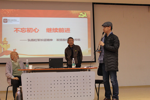 报告会开始,二位教授向大家讲述了自己的学习经历与学院近年来的发展。段平泰教授提到,80年前学院的前身“幼年班”在重庆青木关成立,条件十分艰苦,但是大家克服困难、刻苦求学,涌现了一批优秀的艺术家。段教授向同学们提出了几点期望:保持身体的健康、关心音乐本身、深入了解学校乃至整个中国音乐的历史。李向阳教授则提起学校从青木关迁到江苏徐州地求学于学习经历,当时每四位学习小提琴的同学只能共用一把小提琴练琴,他特别强调实践对于学习音乐的重要性,提倡同学们用学习与实践相结合的方式学音乐。