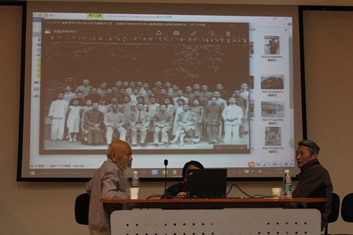随后,二位教授为同学们展示了许多张有动人故事的老照片。在黑白的映像中,同学们更加直观的感受到了新中国成立前音乐学子求学之艰苦,并感叹当下环境优容,更应发愤图强。