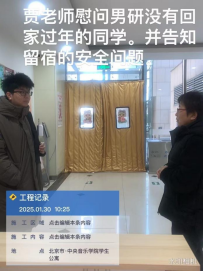 2025年寒假期间,学生因各种原因留宿学生公寓,虽然留宿学生不多,但“服务于学生”的理念牢记于宿管老师的心里。