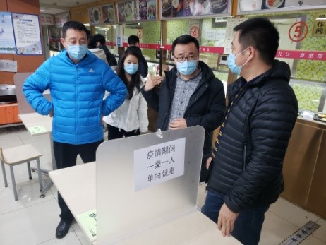 在食堂检查用餐区单向用餐执行情况