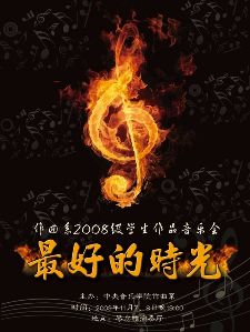 《最好的时光》2008级学生作品音乐会于2009年11月7、8日晚19:00在琴房楼演奏厅顺利举行。此次音乐会展示了学生大学一年的学习成果,作品主要以小型编制为主,包括独奏、重奏和艺术歌曲。同学们的作品各有特点,体现了不同的音乐形式和风格。从写作到排练,最后演出,每个环节都付出了辛苦和劳累。音乐会进行期间,全场热情高涨,掌声不断;结束时唐老师发表了讲话,希望我们保持学习的热情,继续努力。