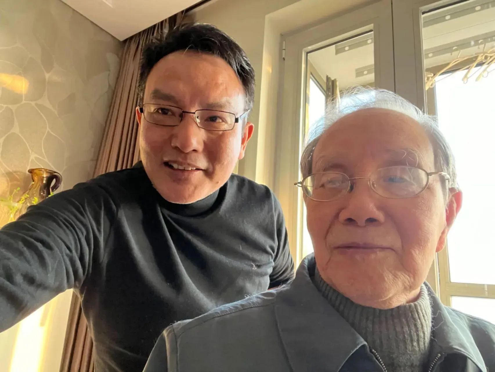 | 何宽钊、刘小龙与黄晓和教授(89岁) |