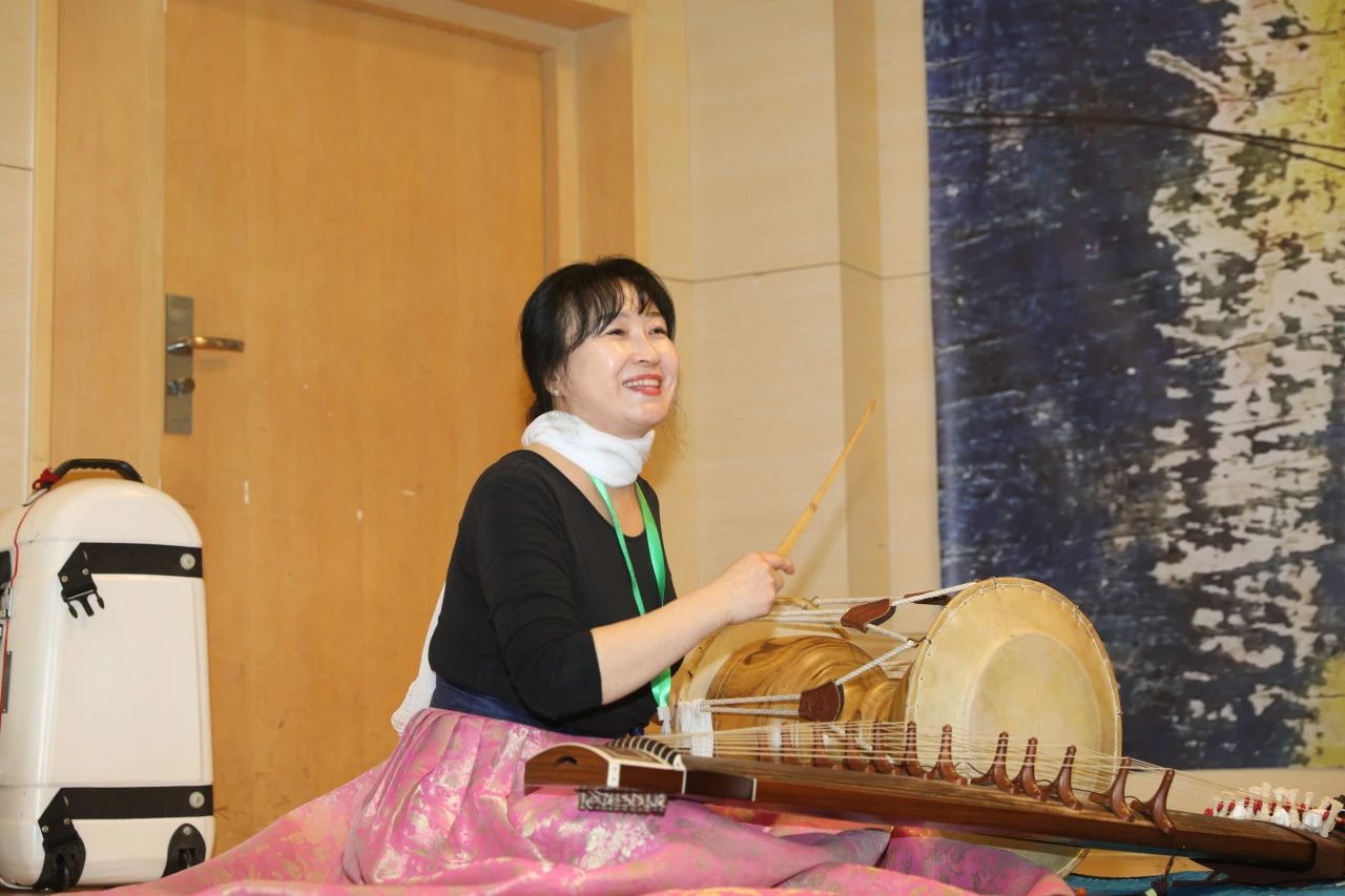 该课程由著名韩国音乐表演艺术家权泰庆讲解。她首先向我们展示了朝鲜传统乐器伽倻琴和长鼓,随后展开与同学间的一对一教学。权老师细心调整同学的触弦位置,纠正同学们的发音,最后带领学生共同完成了朝鲜传统说唱音乐《盘索里》的演奏与演唱。