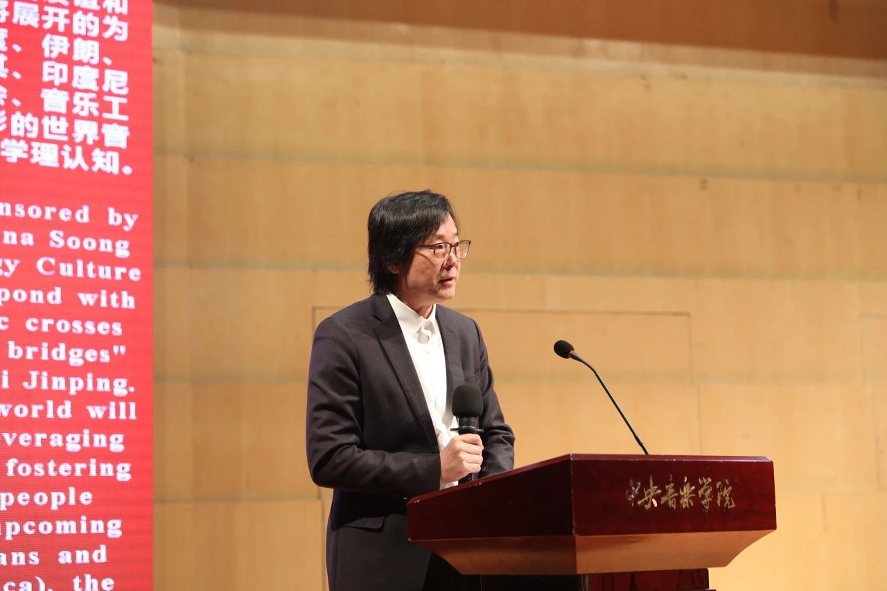 世界民族音乐学会副会长罗艺峰教授也给予致辞。他认为在这场活动中,每个人都将见证世界不同文明的互鉴与不同文化的亲密。“地球上每时每刻都在奏响着人类文明所创造的音乐,这是多么了不起的事情啊!”他赞许了世界音乐周的多元性并期待本次活动带来的良好影响,他相信每个人都将“收获满满”。