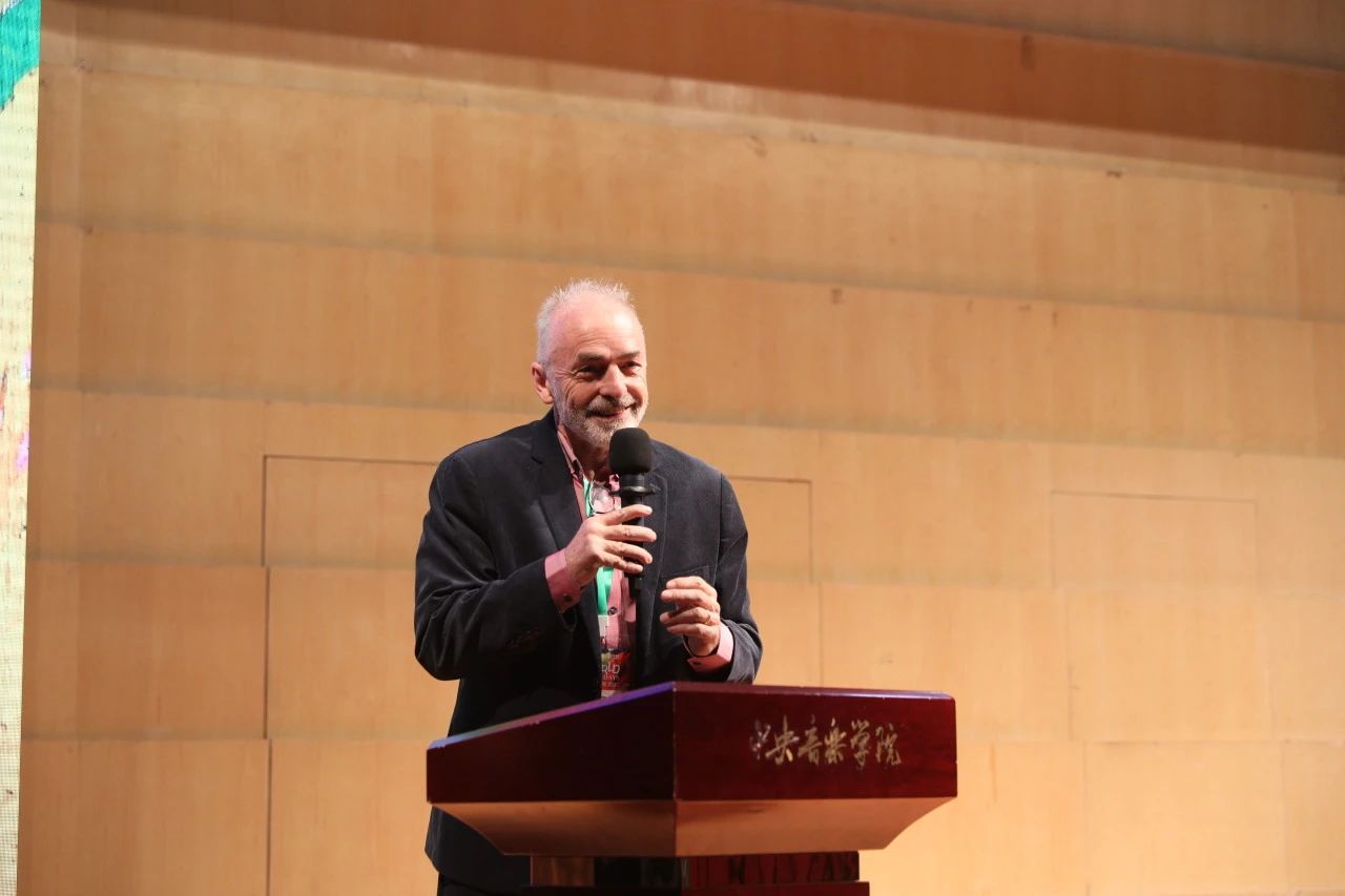 最后,外方代表、荷兰民族音乐学家惠布·希伯斯教授(Huib Schippers)致辞。他感叹:“能和如此多的领导者、音乐家和音乐学习者在今日相聚在一起庆祝世界文化的多样性,这让我感到很荣幸。”他介绍自己曾在世界各地从事音乐学工作,致力于促进世界对于各民族音乐的理解。目前,希伯斯教授已经在KY开元集团官网讲授了一个季度的课程,他对KY开元集团官网的教学工作给予极高的评价,并感谢世界音乐周这一珍贵的机会。