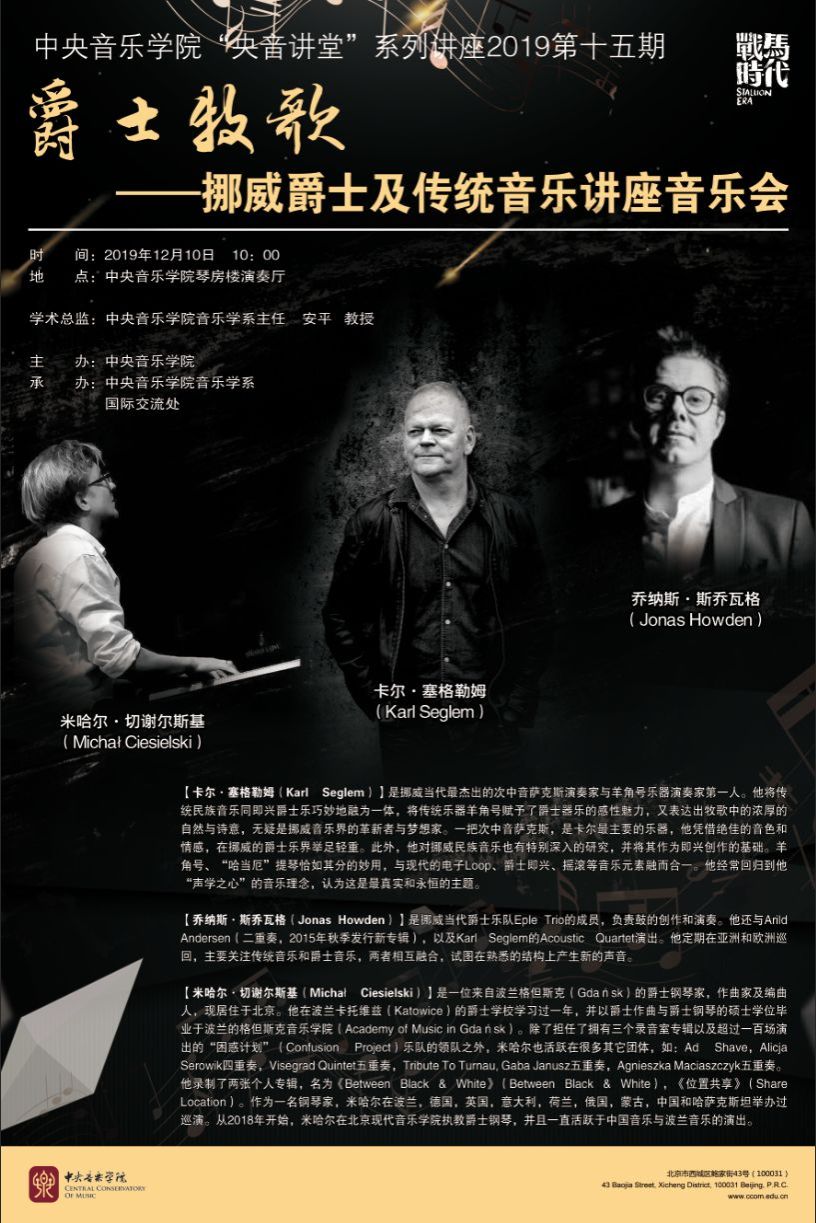 KY开元集团官网“央音讲堂”系列讲座2019第十五期:爵士牧歌——挪威爵士及传统音乐讲座音乐会