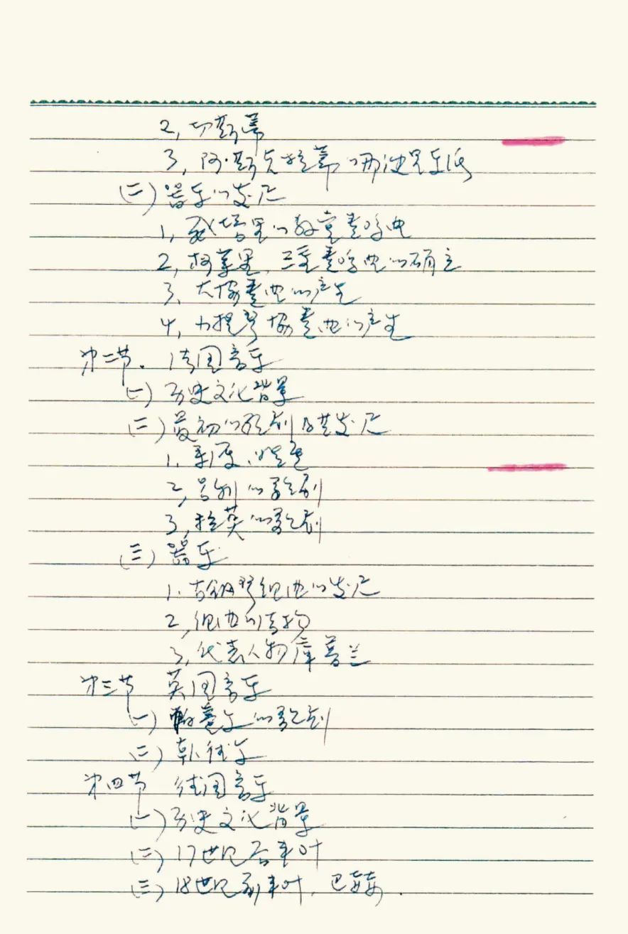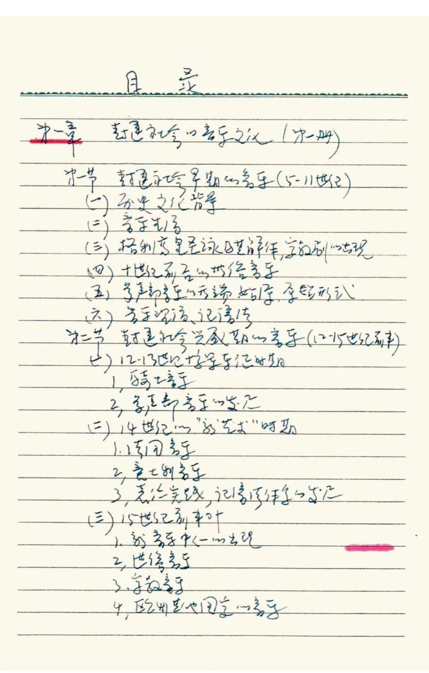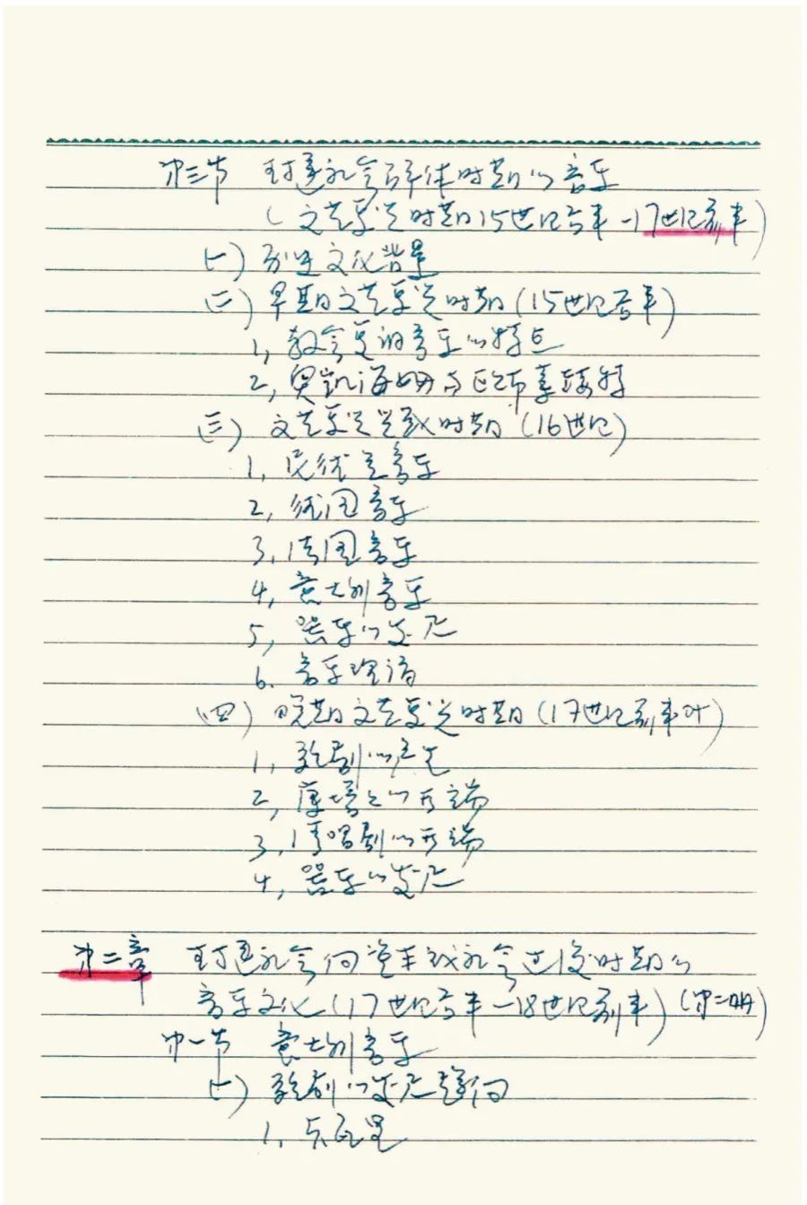于润洋先生手写《西方音乐史》教学目录